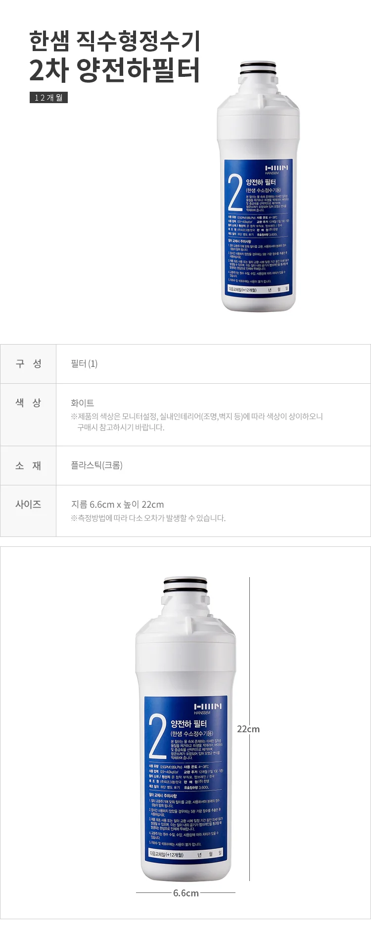 주방 직수형정수기 2차 양전하필터 (12개월)