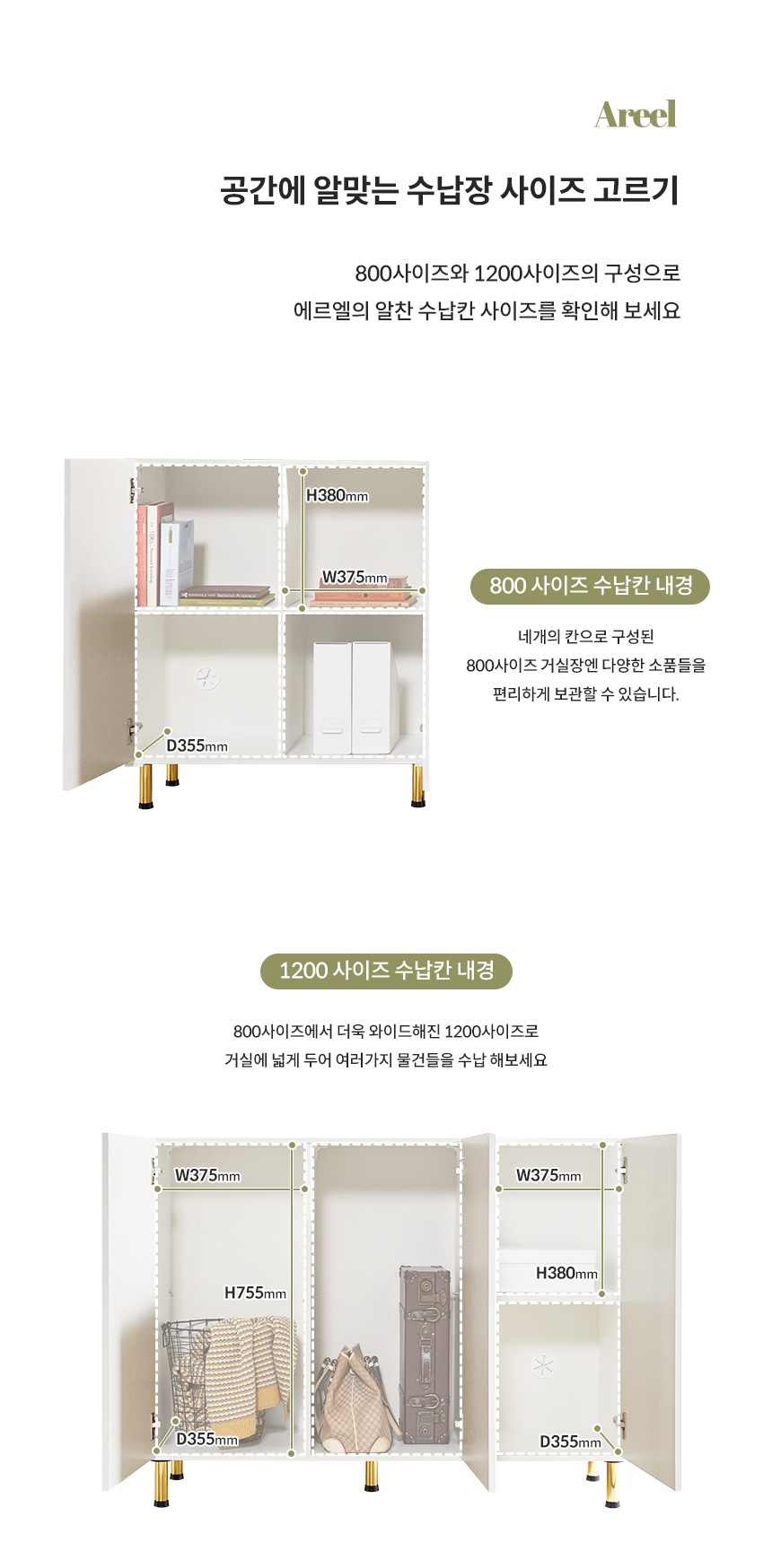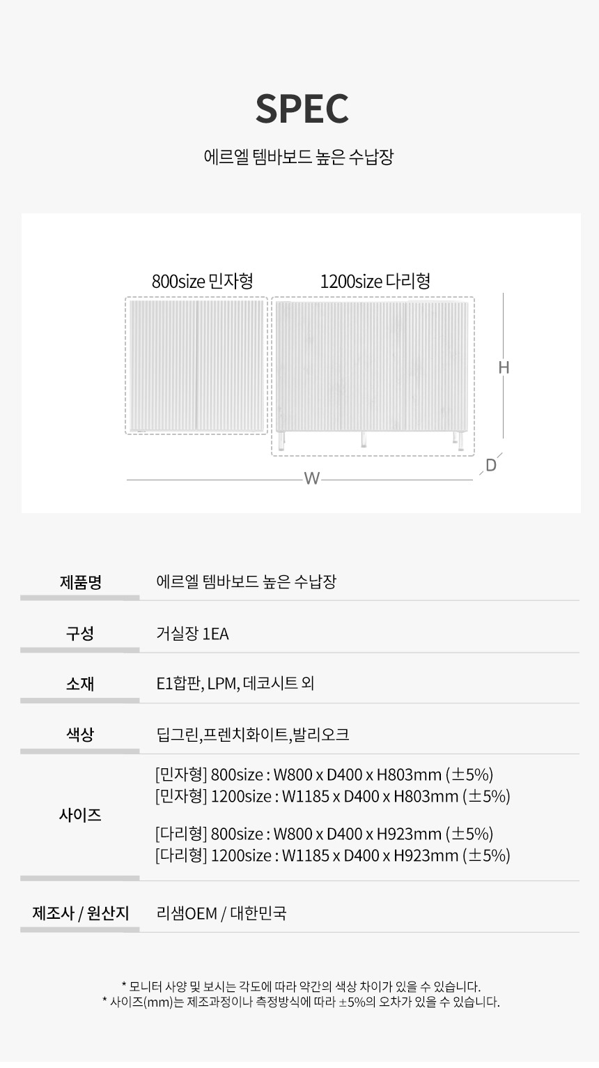 에르엘 800/1200 템바보드 높은 거실장 수납장