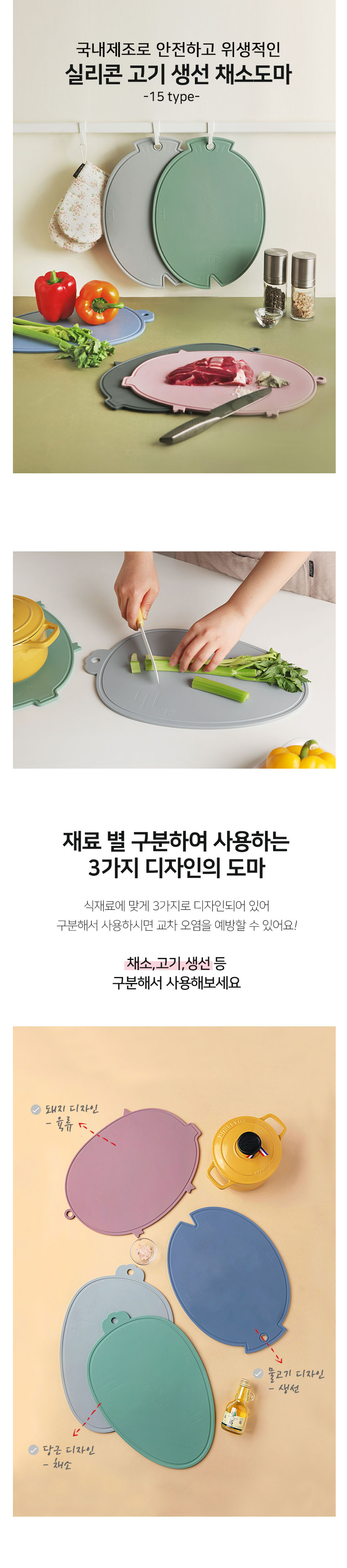 국내제작 실리콘 고기 생선 채소도마(15type)