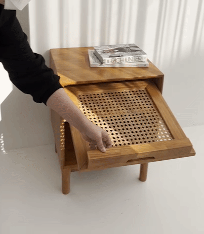 [특가 ~2/9]미드나잇 라탄 원목 플랩도어 협탁