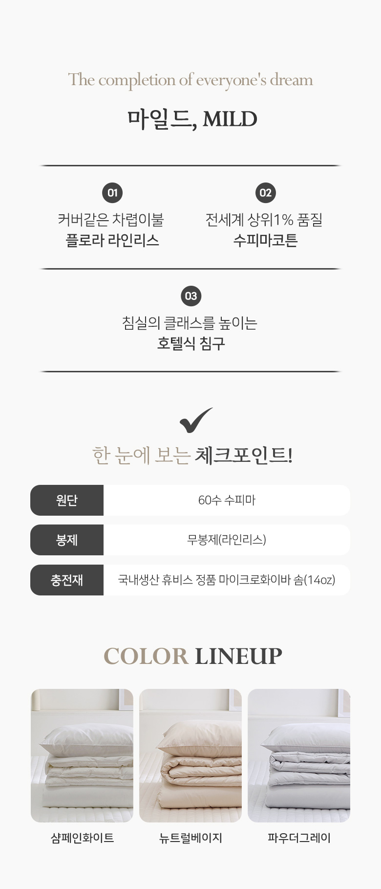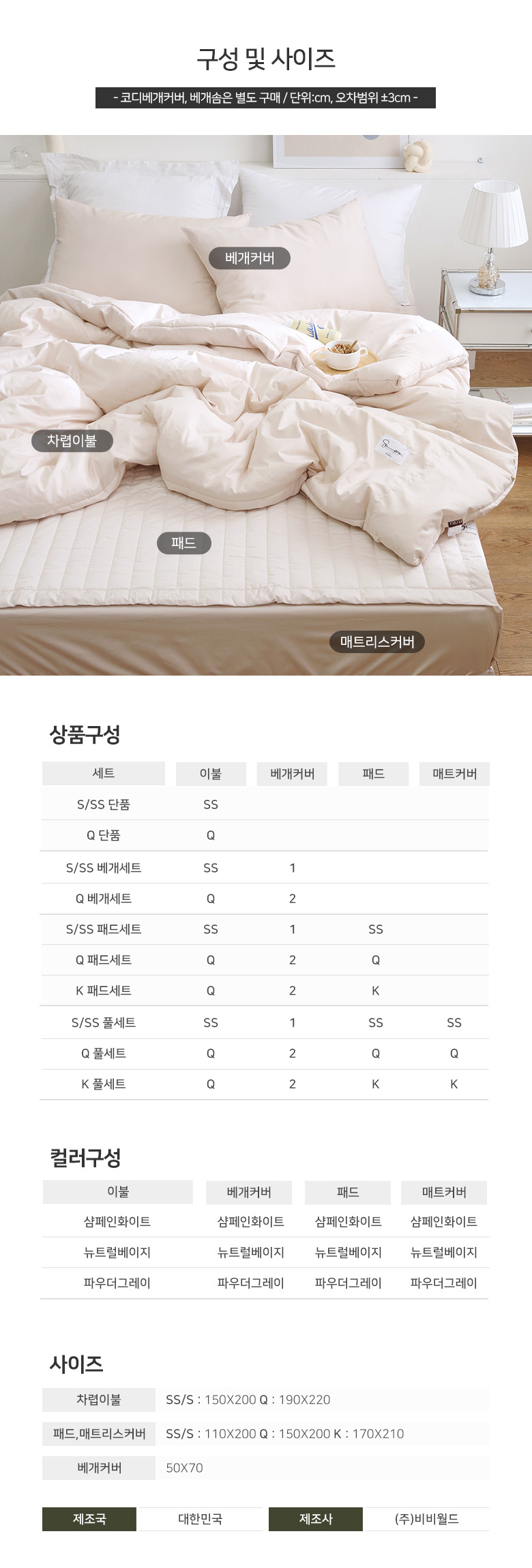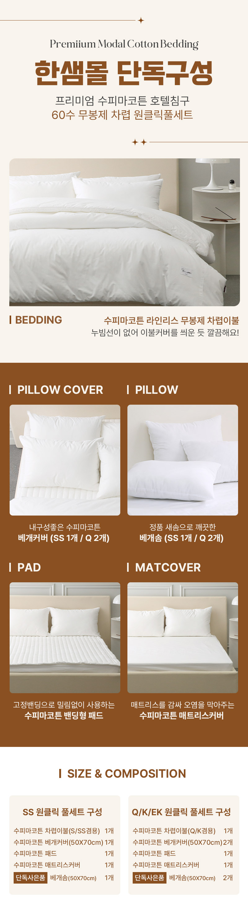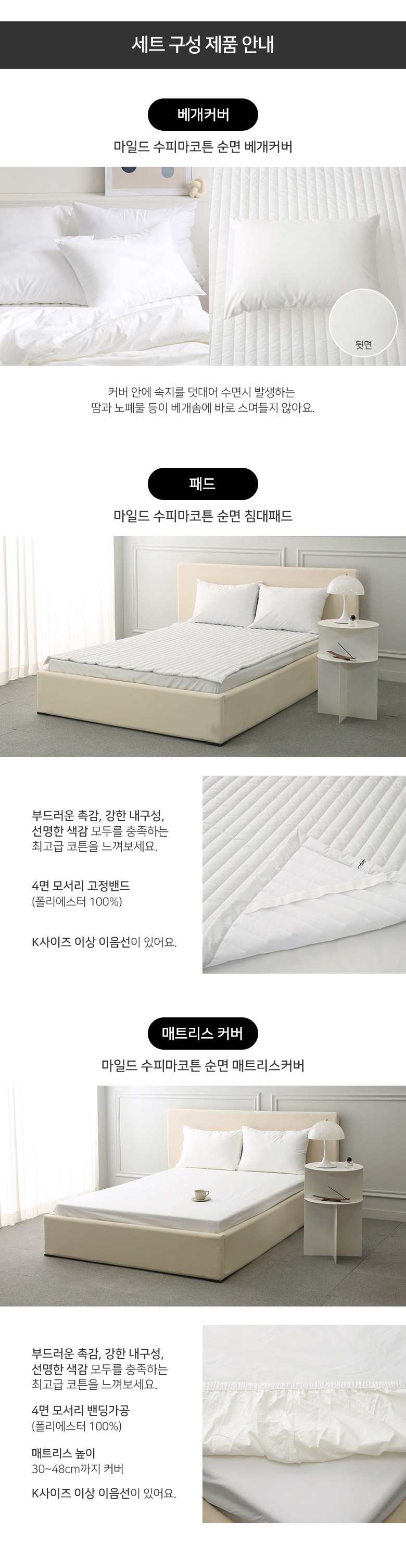 [특가 ~12/22](원클릭풀세트)마일드 60수 수피마코튼 라인리스 호텔 차렵이불 침구풀세트 SS/Q/K