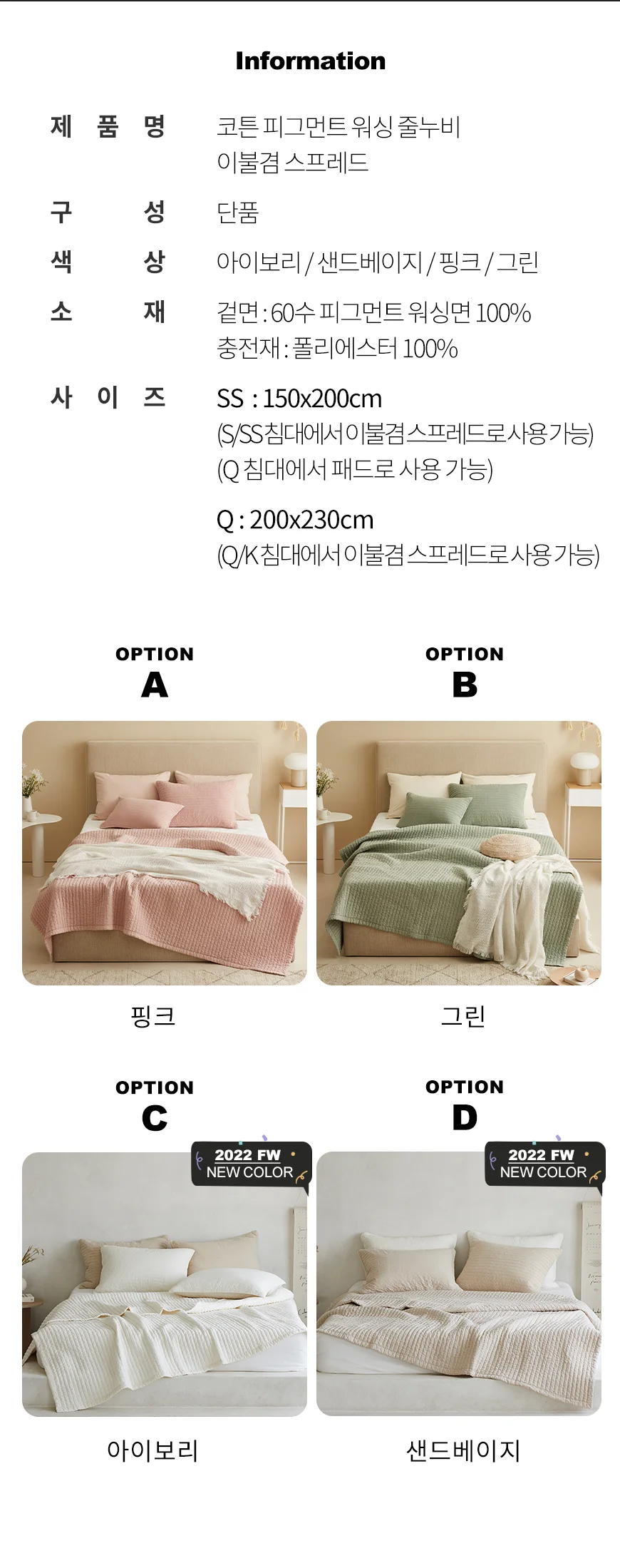코튼 피그먼트 워싱 줄누비 이불겸 패드 (8종/택1)