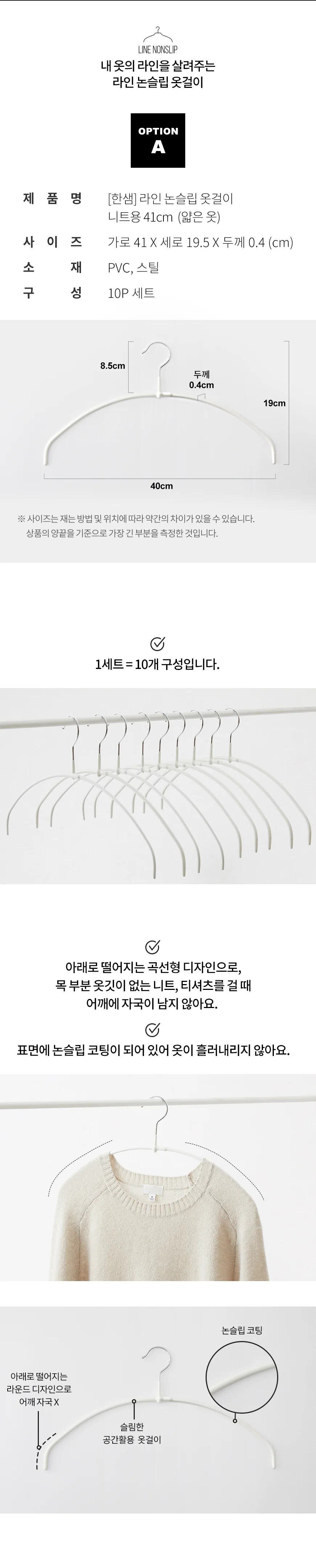 [특가~12/22]라인 논슬립 니트용 옷걸이 크림화이트 10P