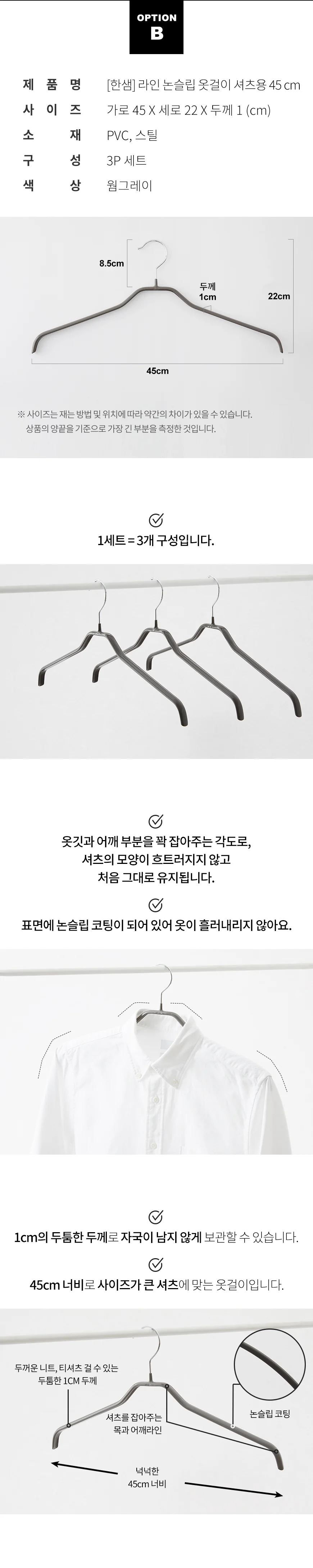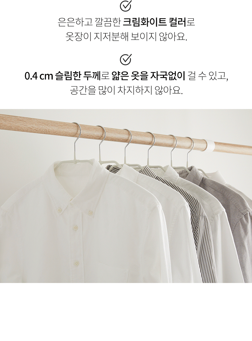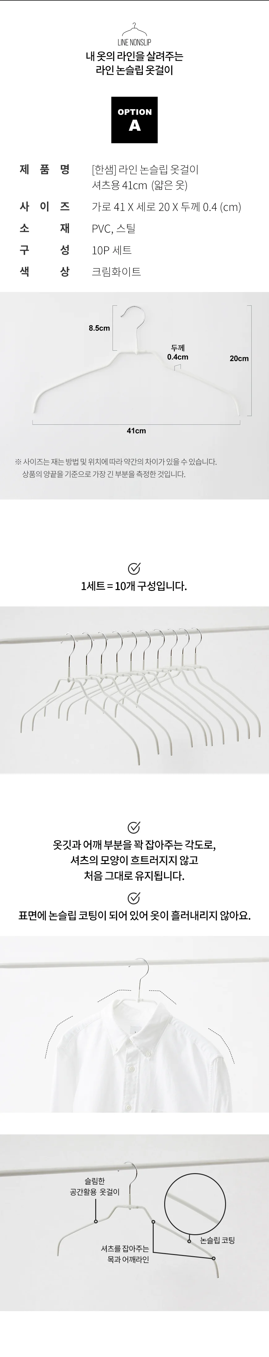 라인 논슬립 셔츠용 옷걸이 크림화이트 10P