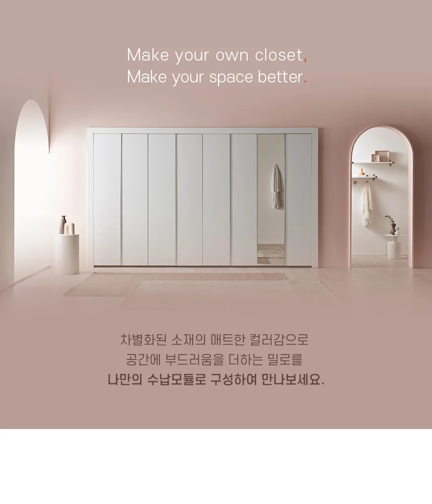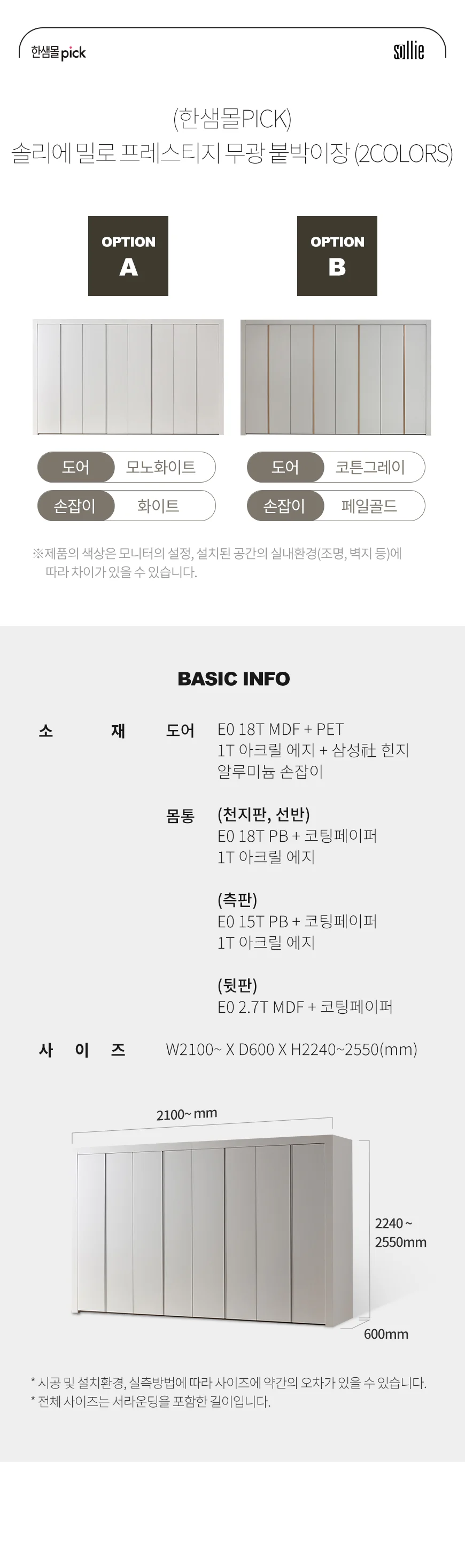 (한샘몰pick) 밀로 프레스티지 무광 붙박이장 (2colors)