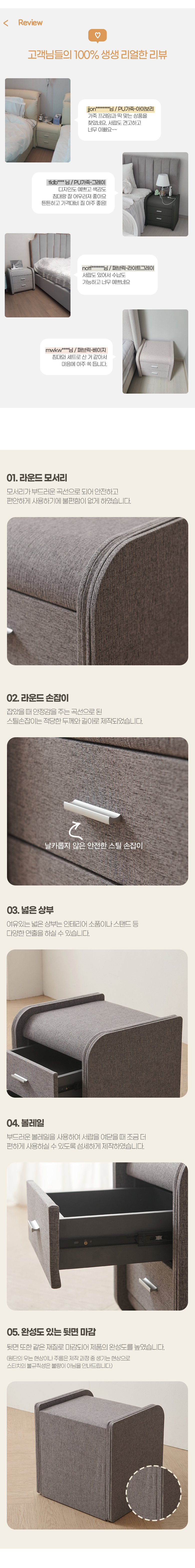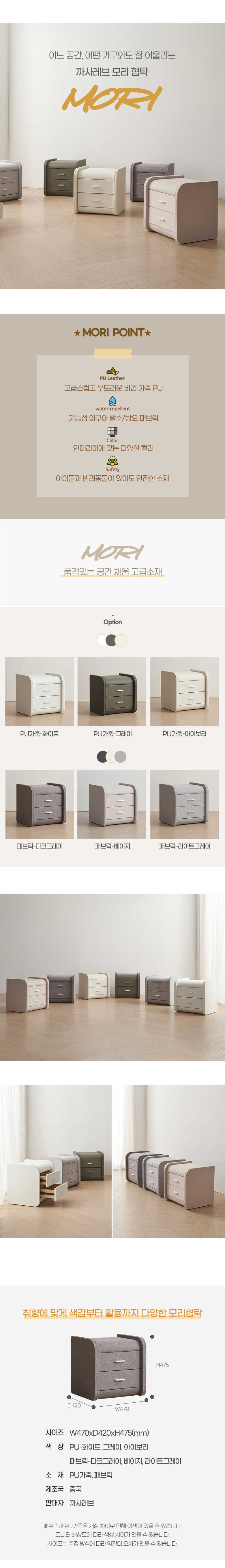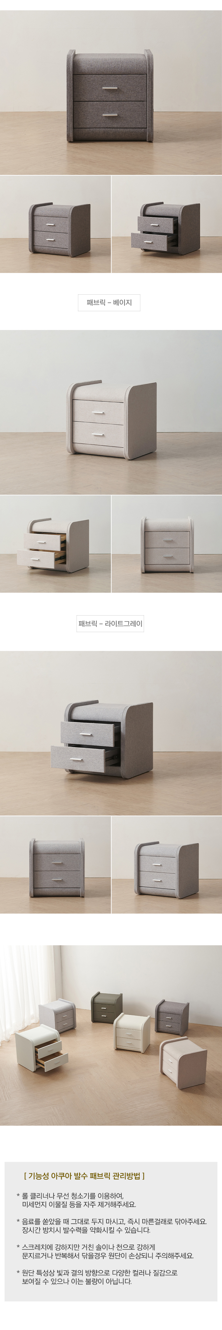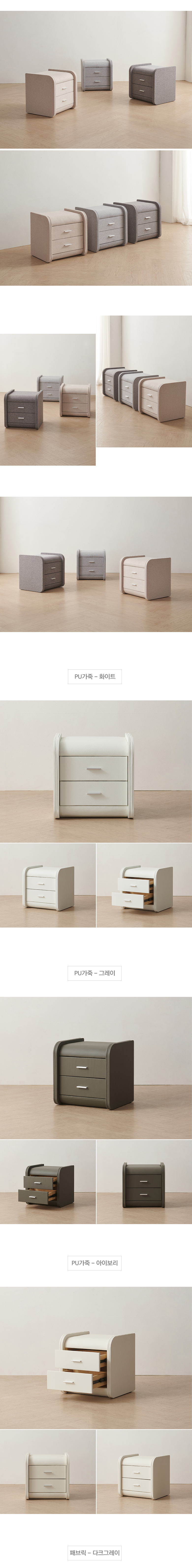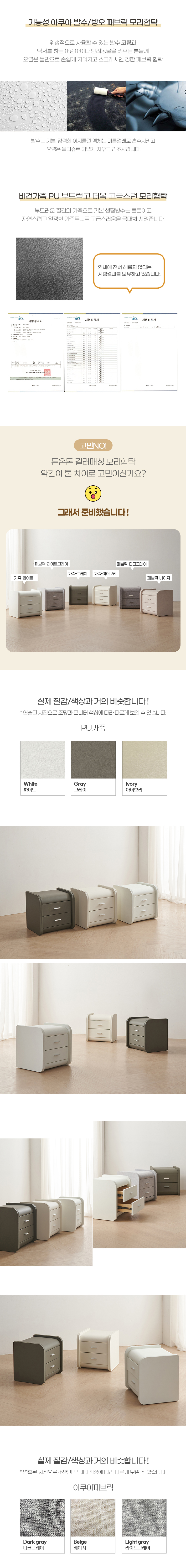 모리 침대 협탁 가죽 패브릭 2단 서랍