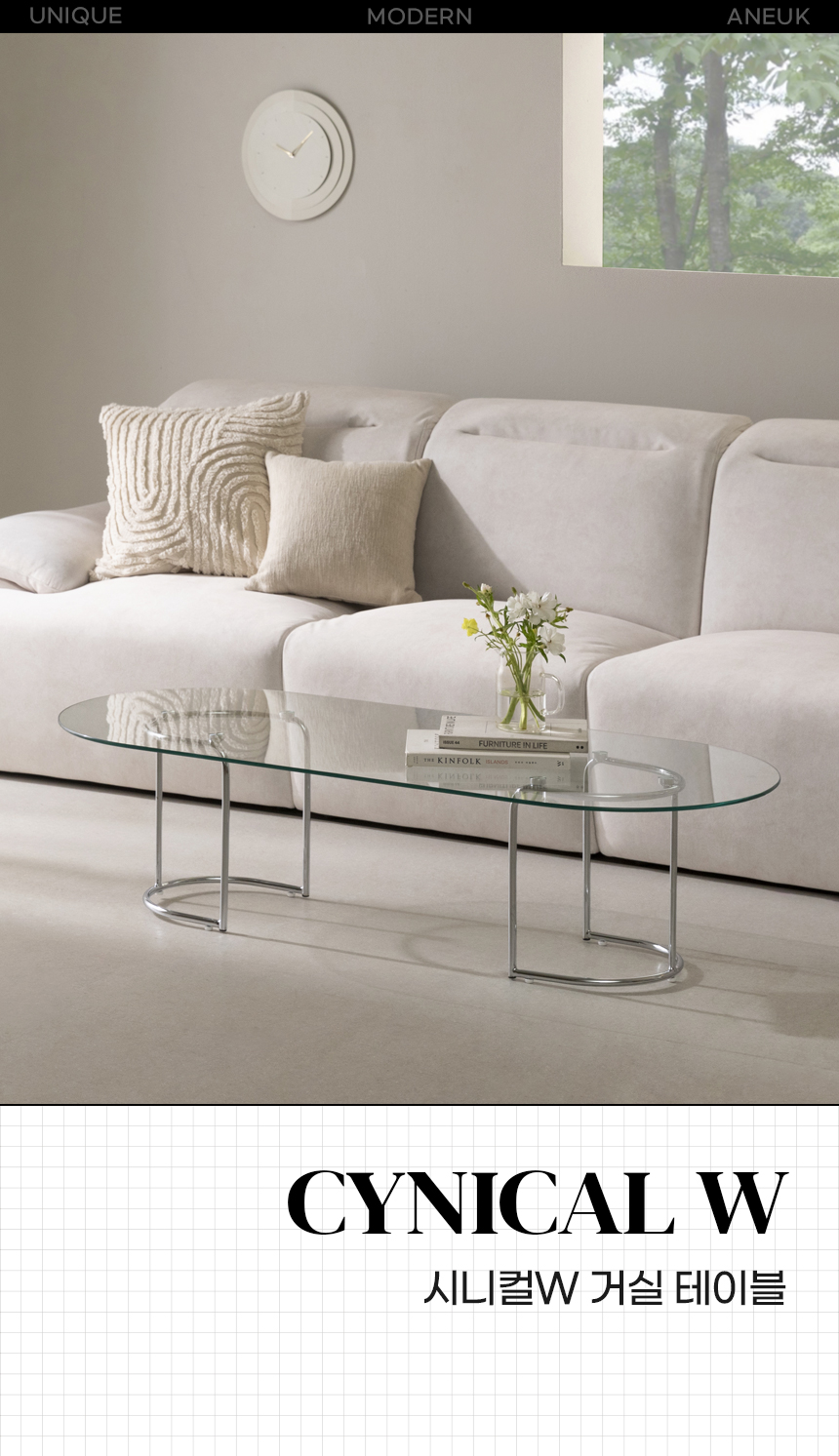 아늑 시니컬W 1400 강화 유리 거실 테이블/원형 소파 테이블