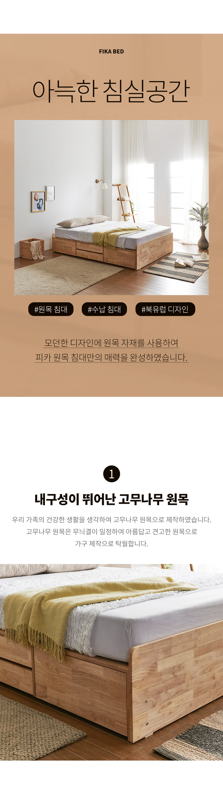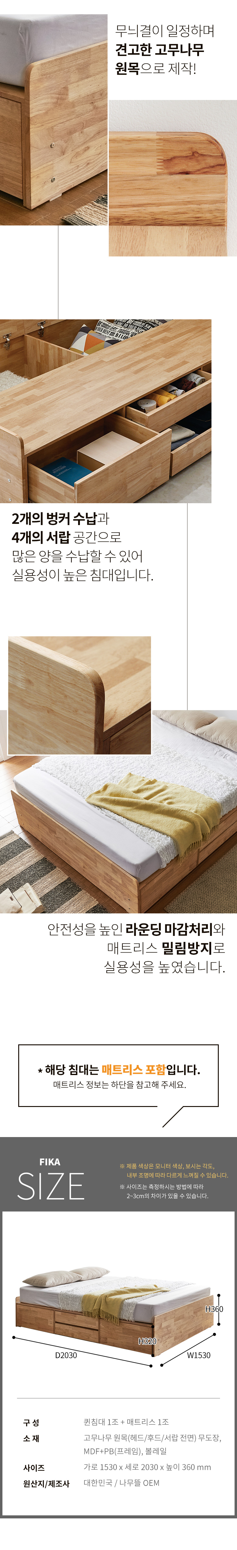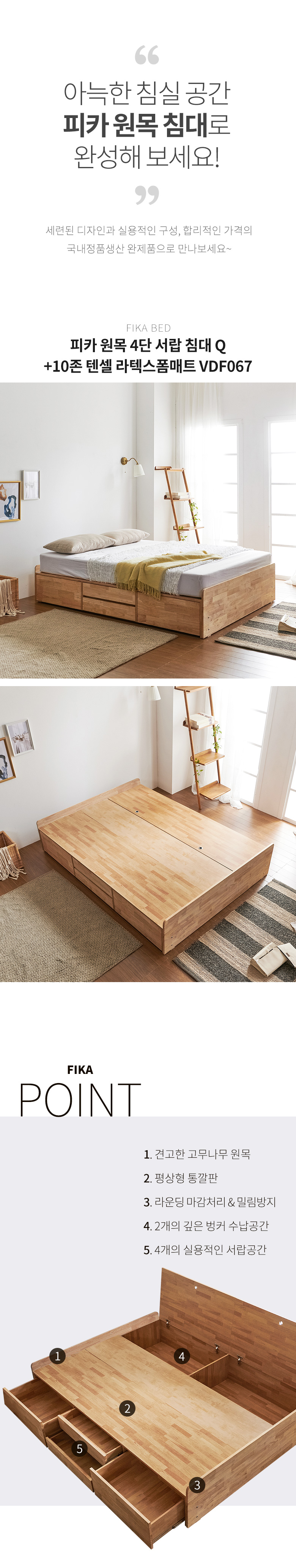 피카 원목 4단 서랍 침대 Q+10존 텐셀 라텍스폼매트 VDF067C
