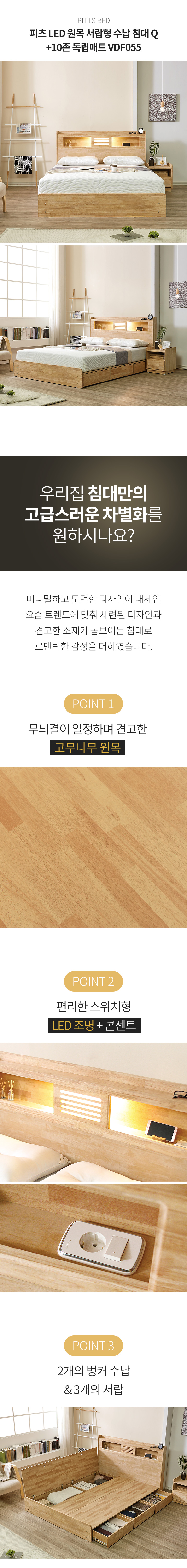 피츠 LED 원목 서랍형 수납 침대 Q+10존 독립매트 VDF055C