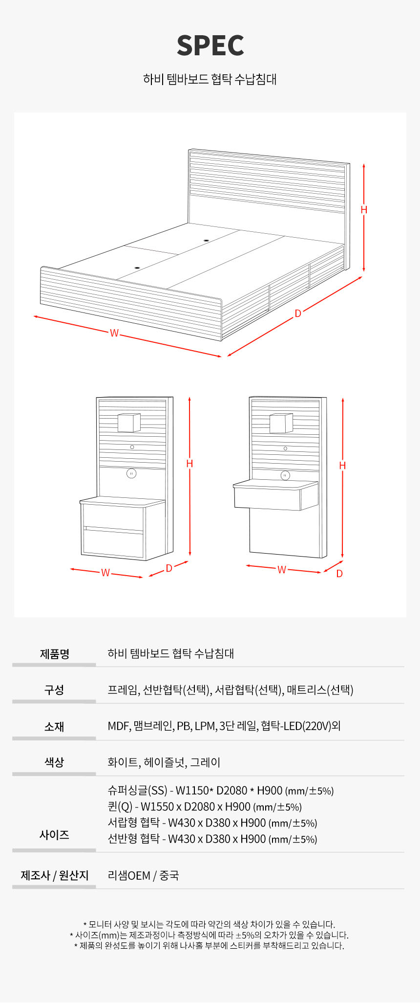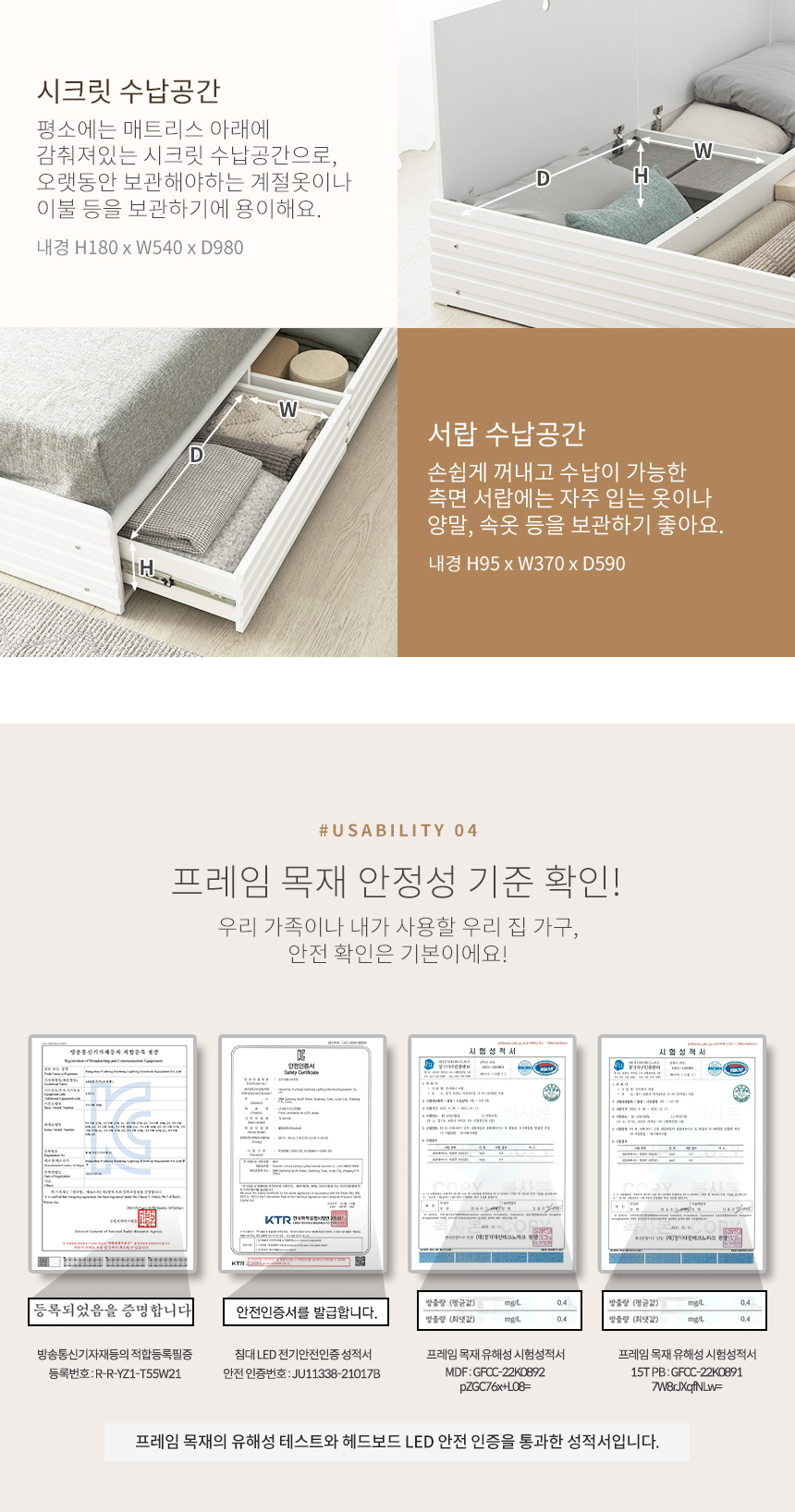 파로마 하비 LED조명 템바보드 호텔형 수납침대 SS Q