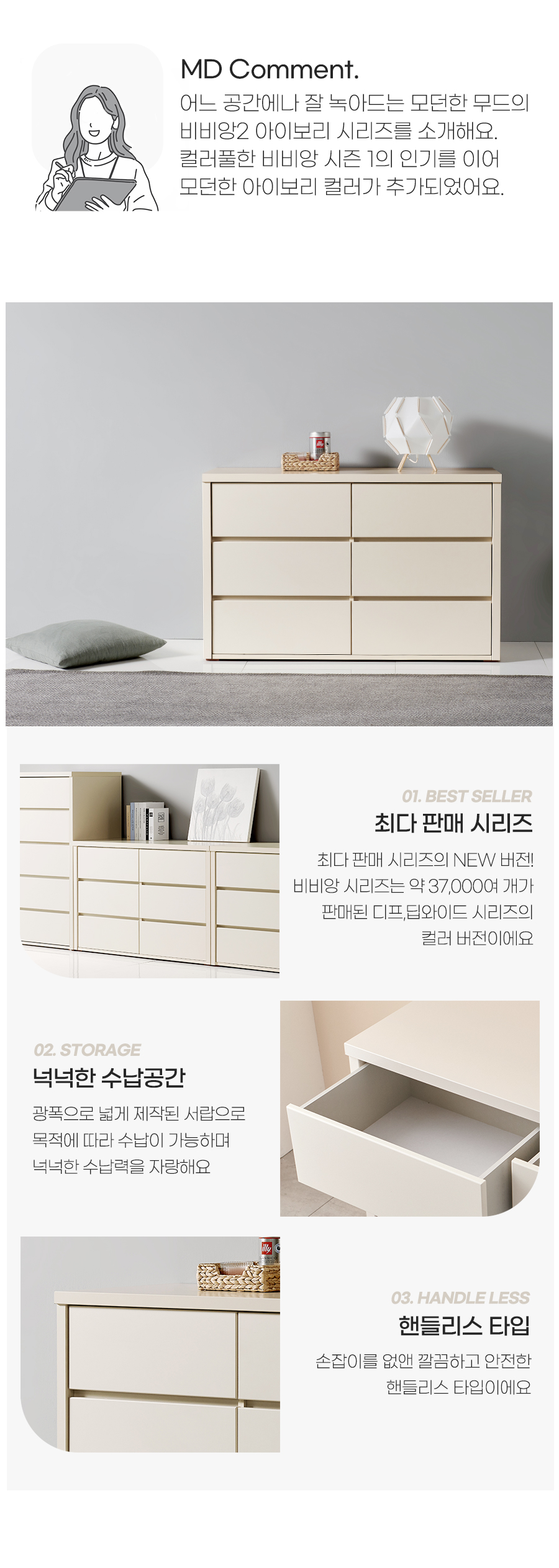 비비앙2 광폭 서랍장 아이보리 1200 광폭 수납장 아이보리