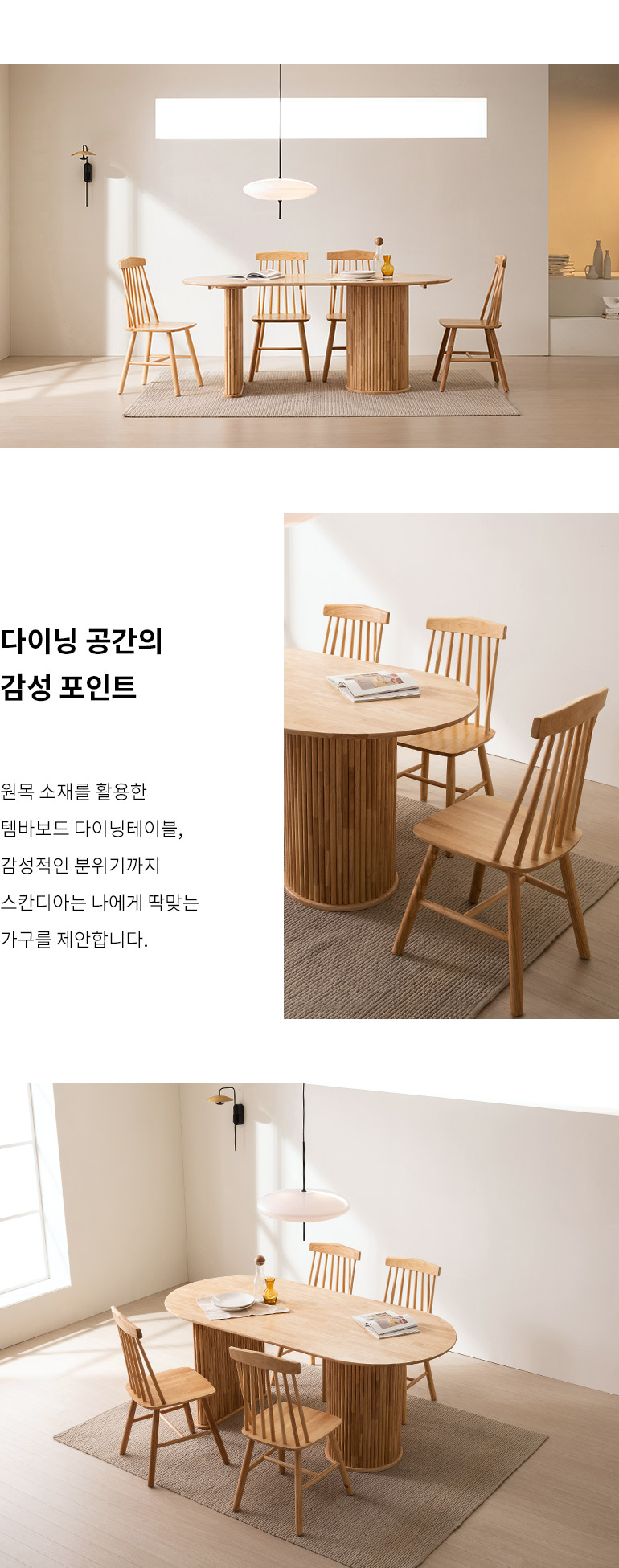 스칸디아 모먼트 템바보드 식탁 테이블 세트(리움 원목의자4)