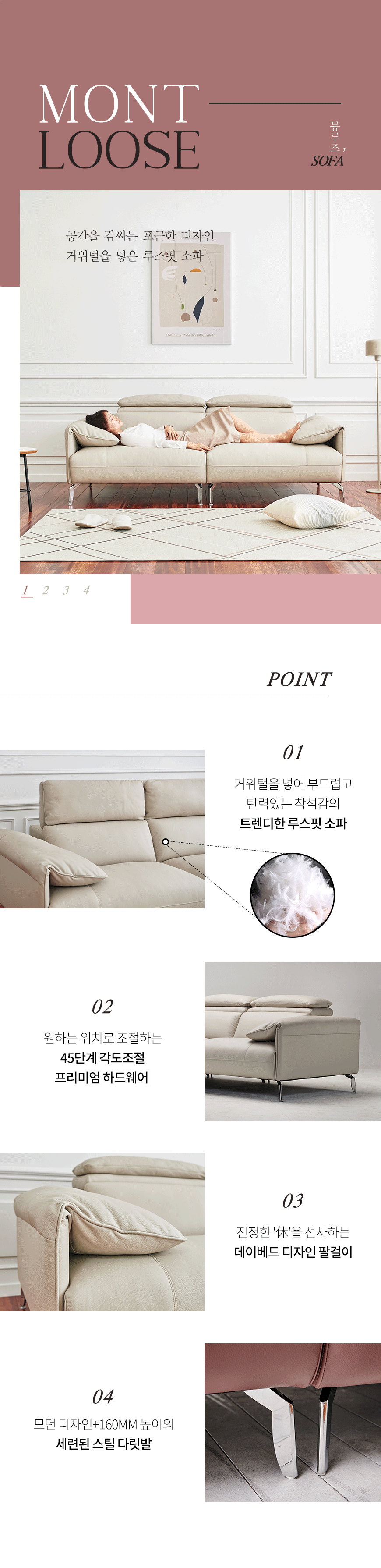 [바이노만]몽루즈 거위털 천연면피가죽 3인용 소파(2종/택1)
