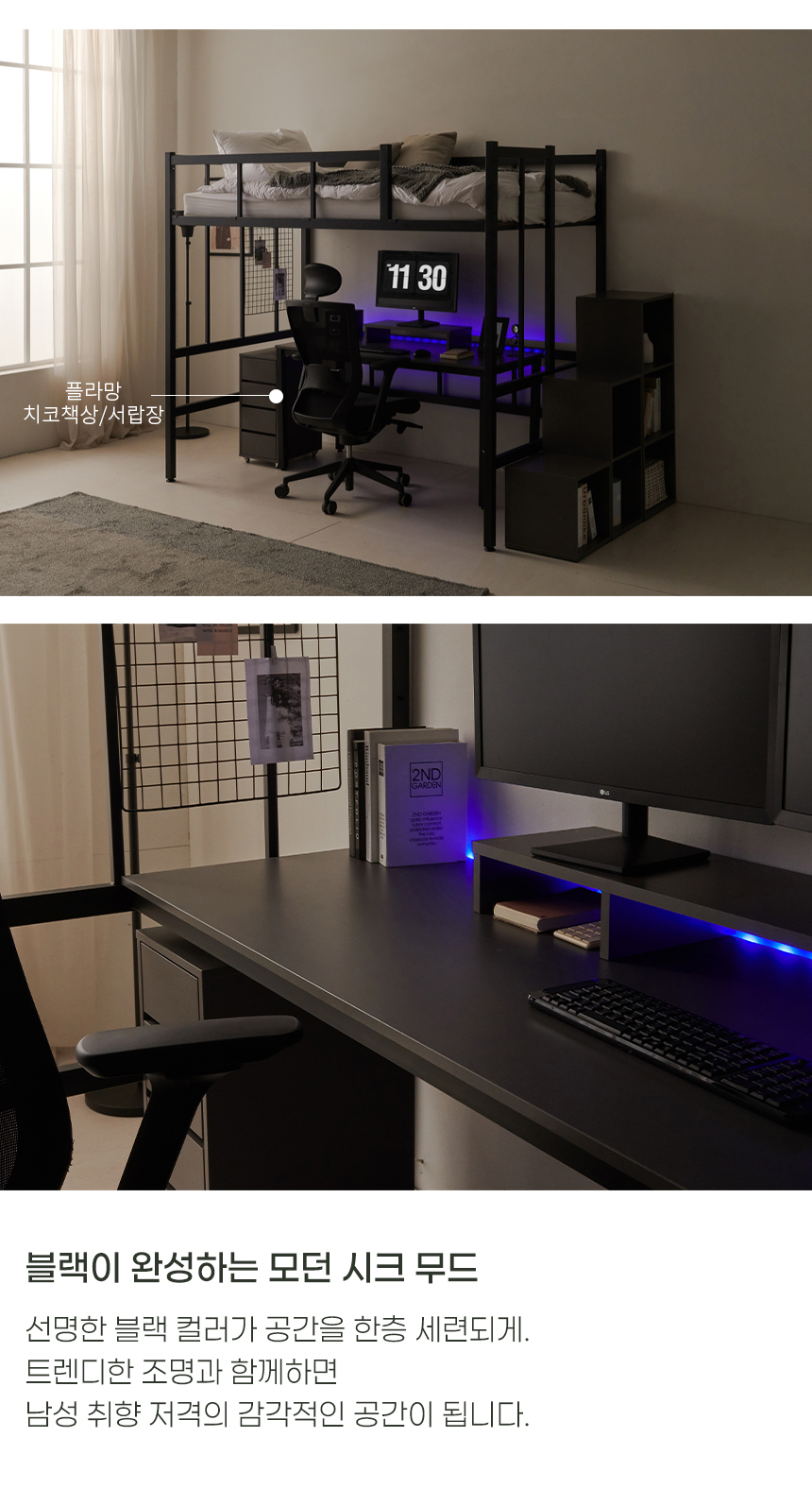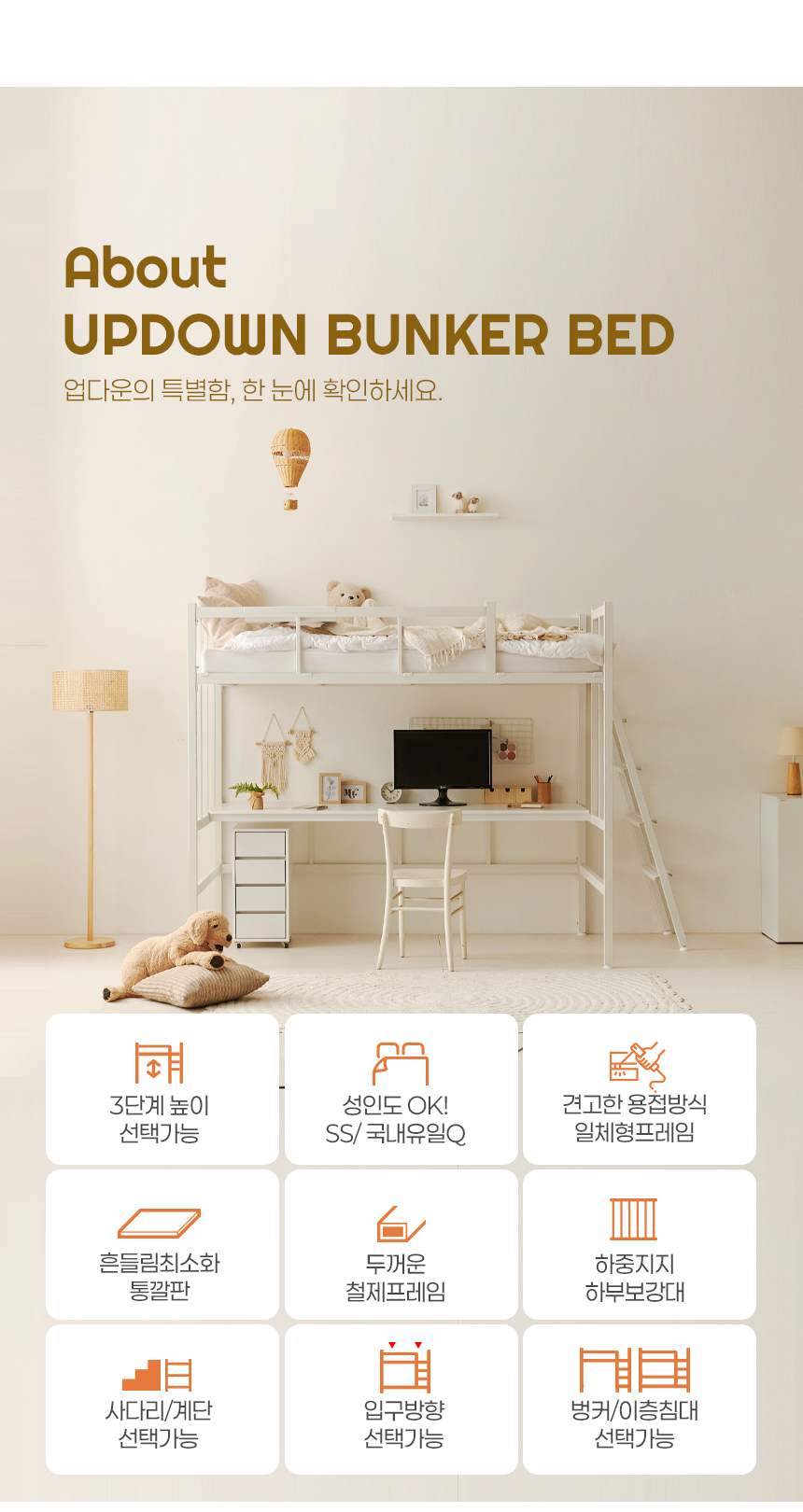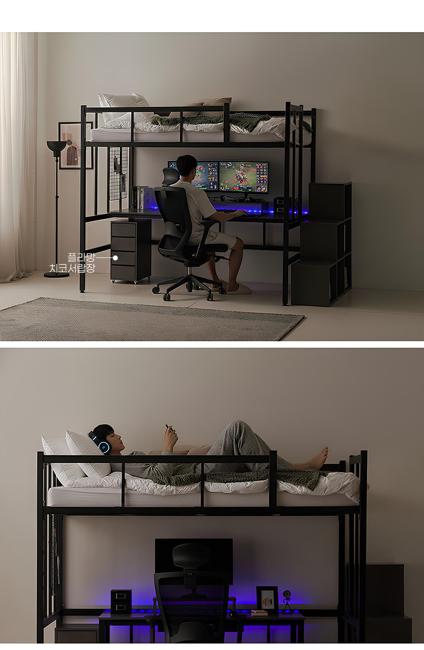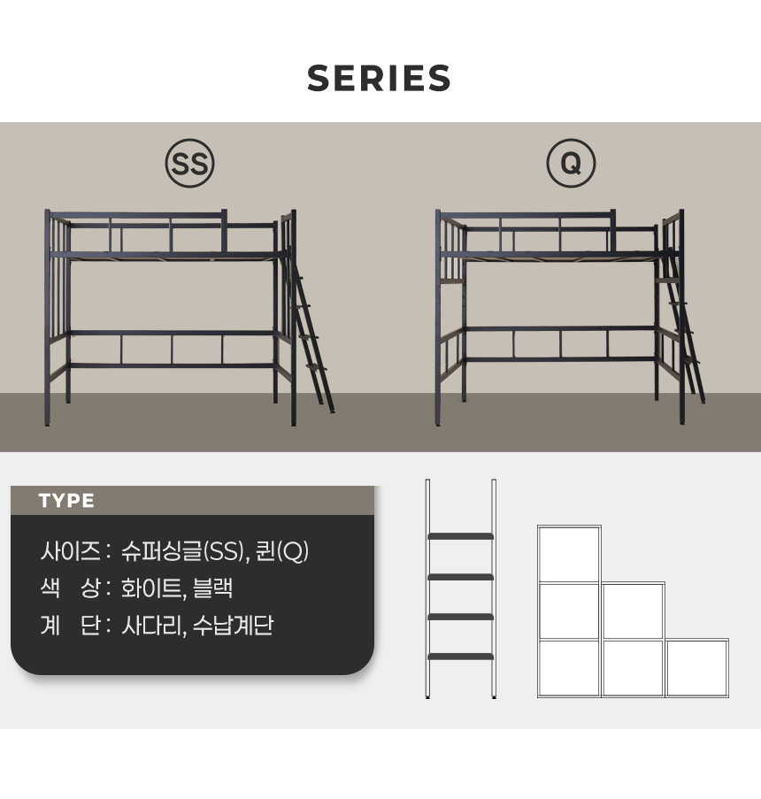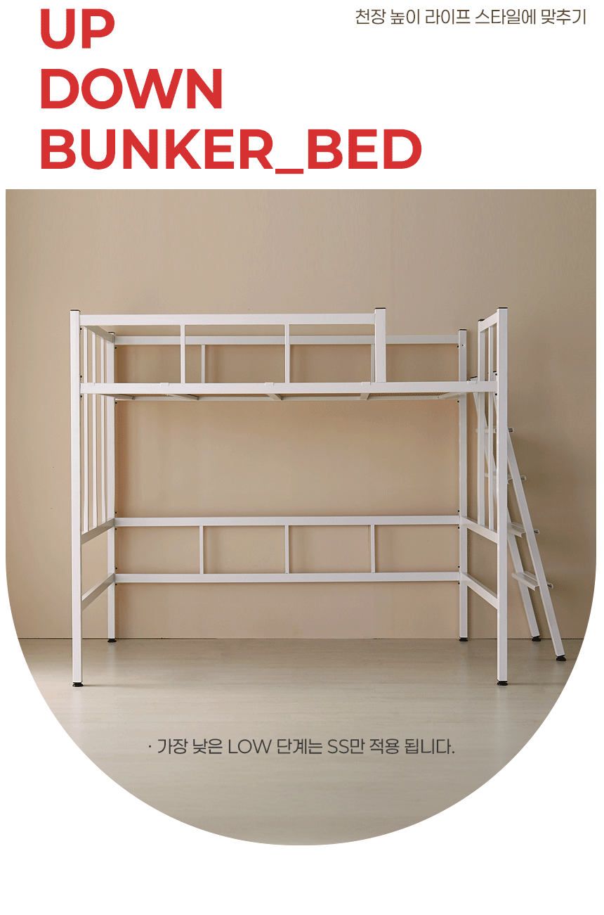 업다운 철제 이층 침대 블랙 SS 수납계단형