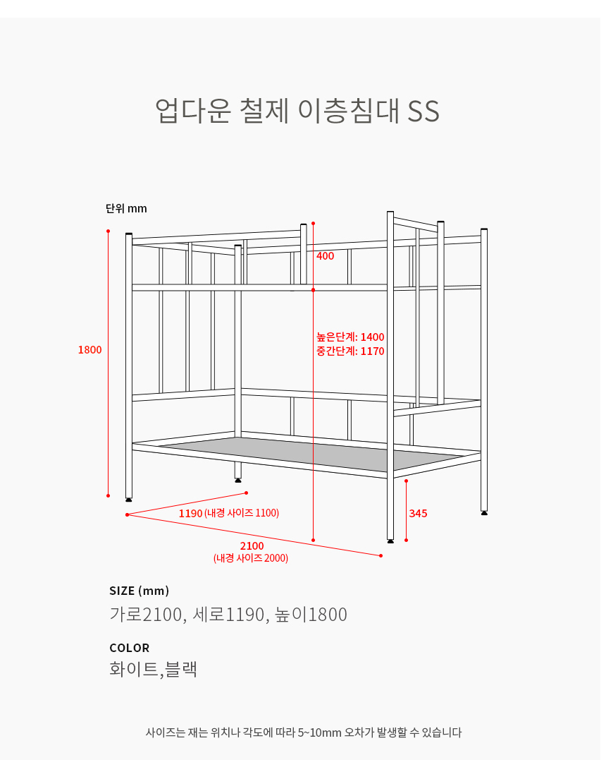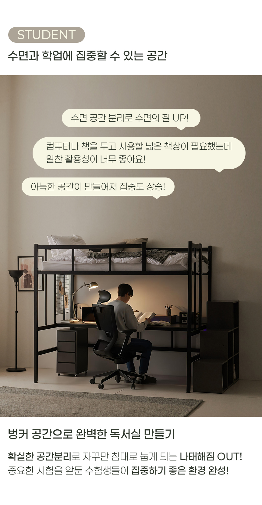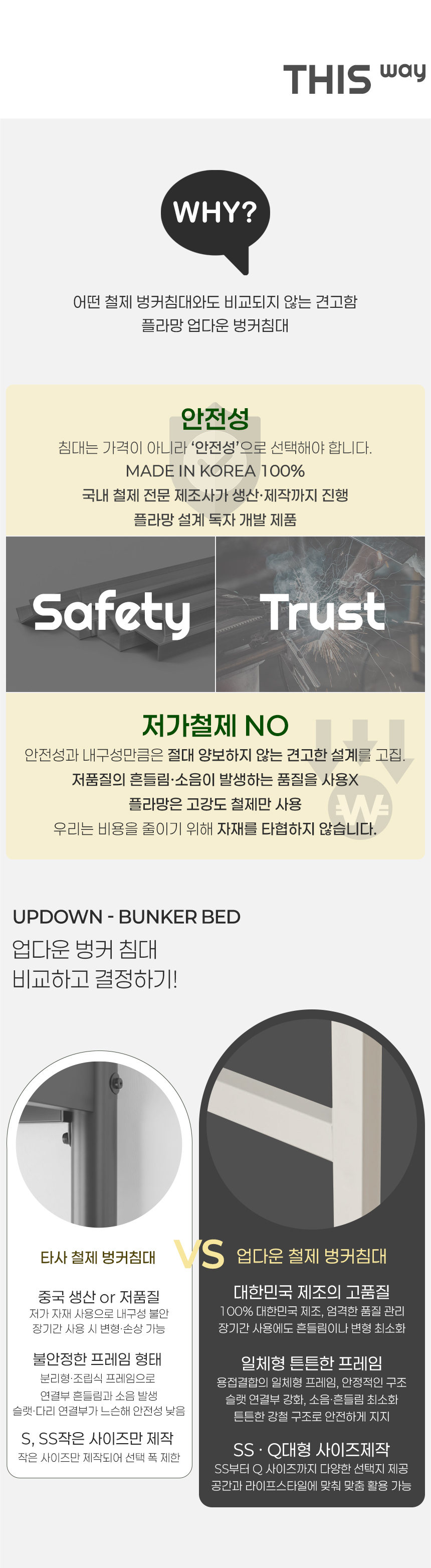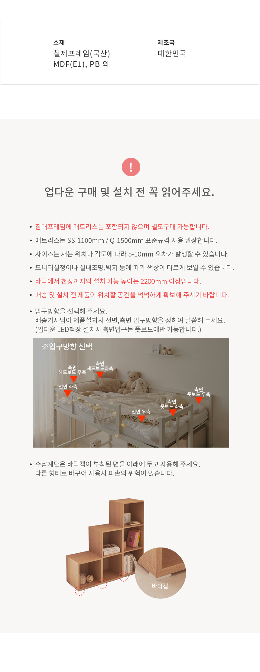 업다운 철제 이층 침대 블랙 SS 수납계단형