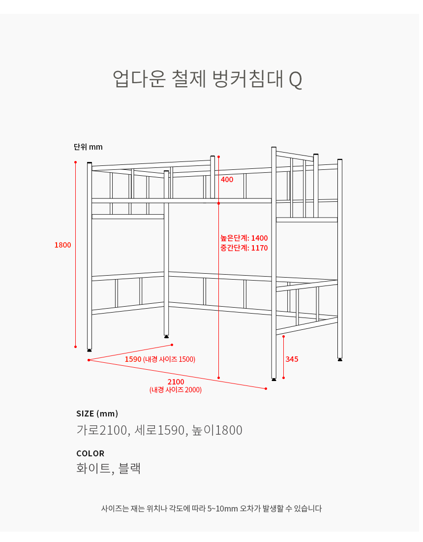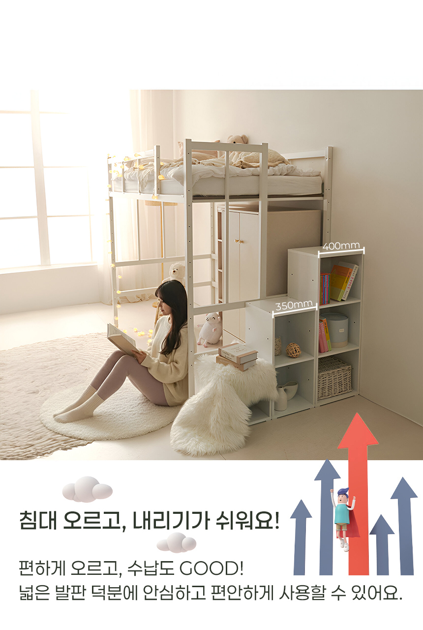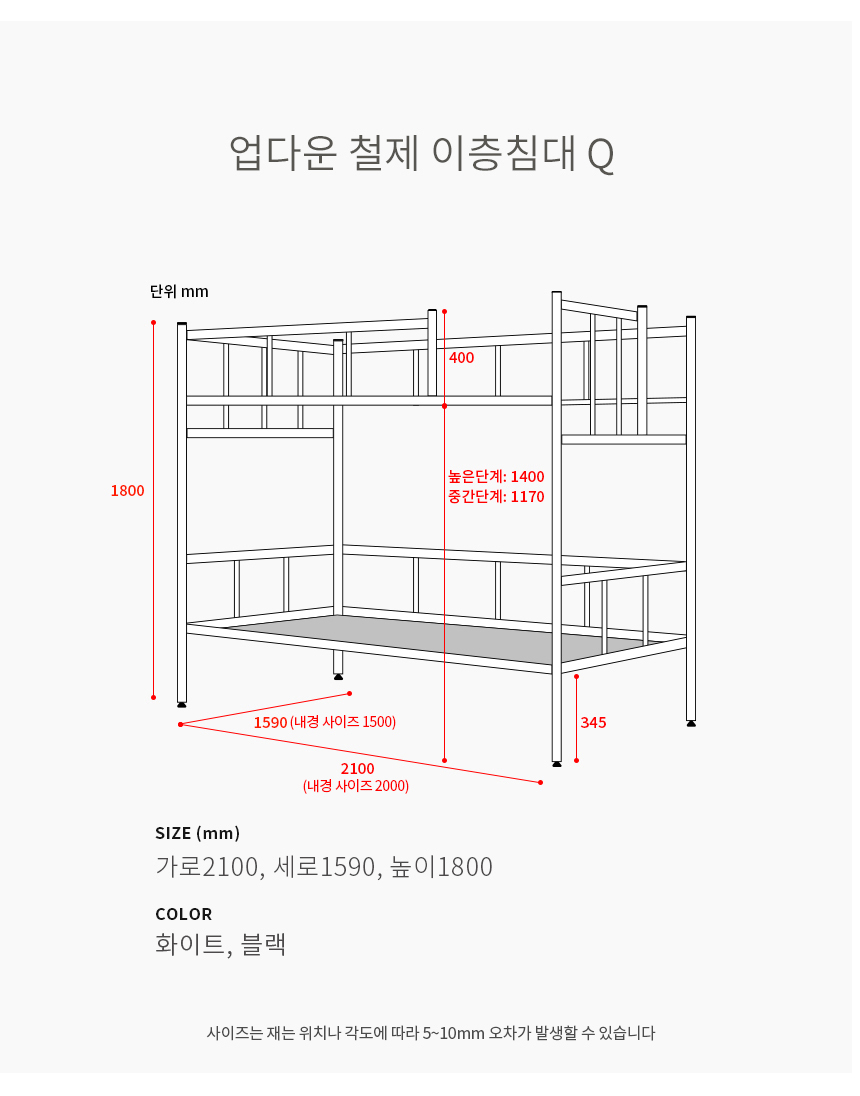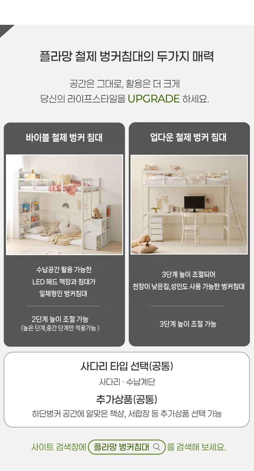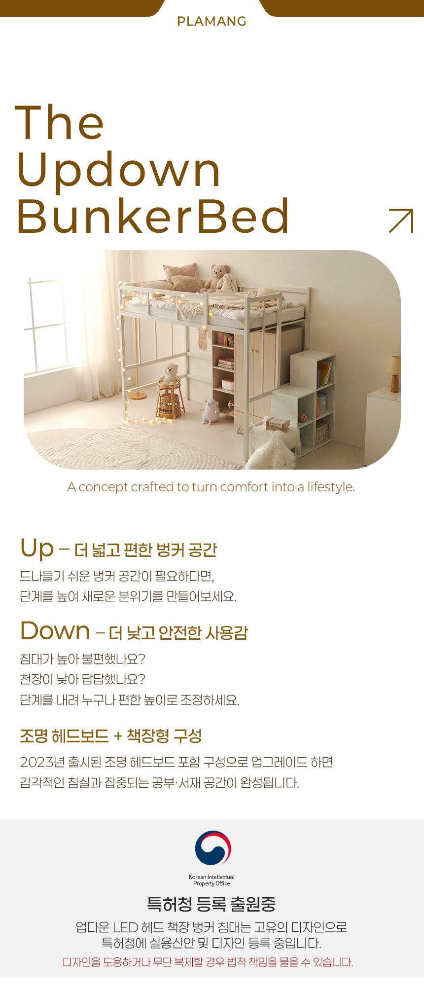 업다운 철제 이층 침대 블랙 SS 수납계단형