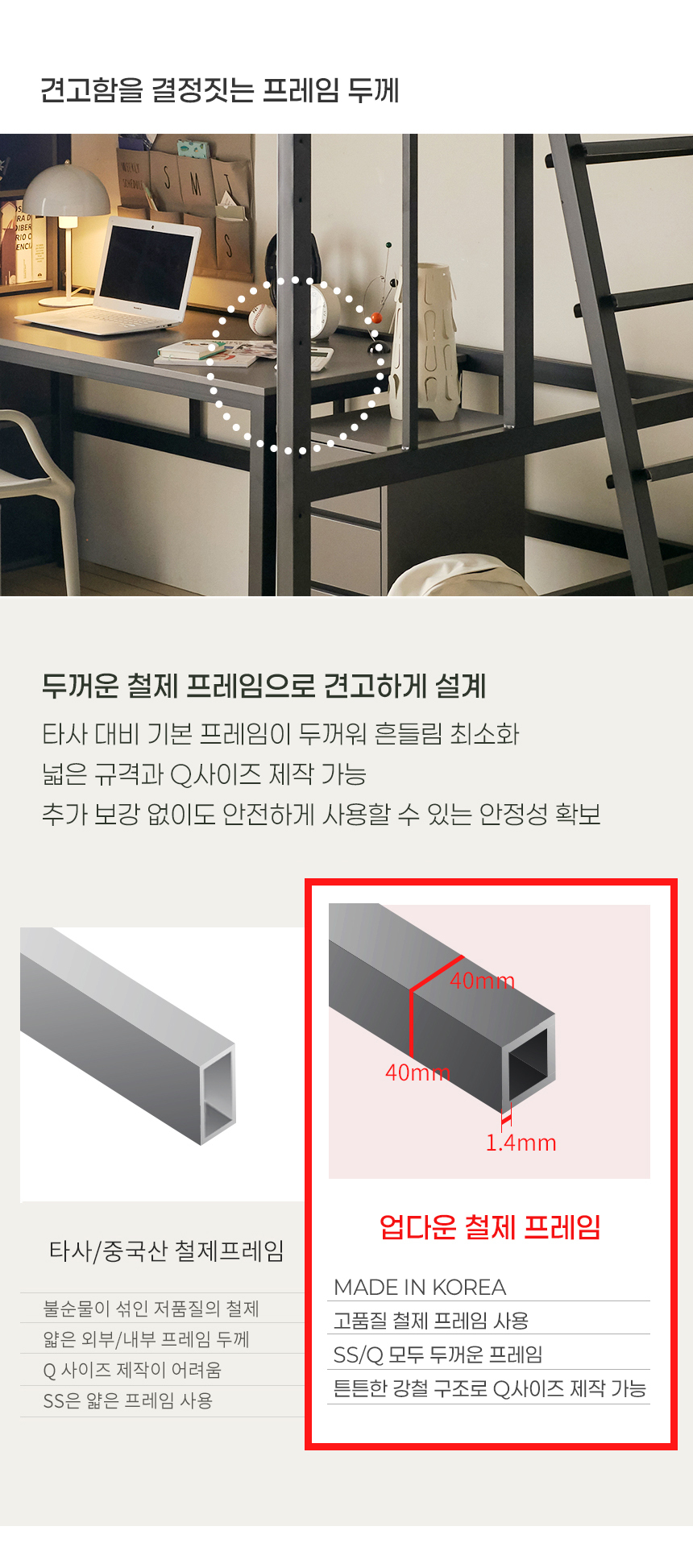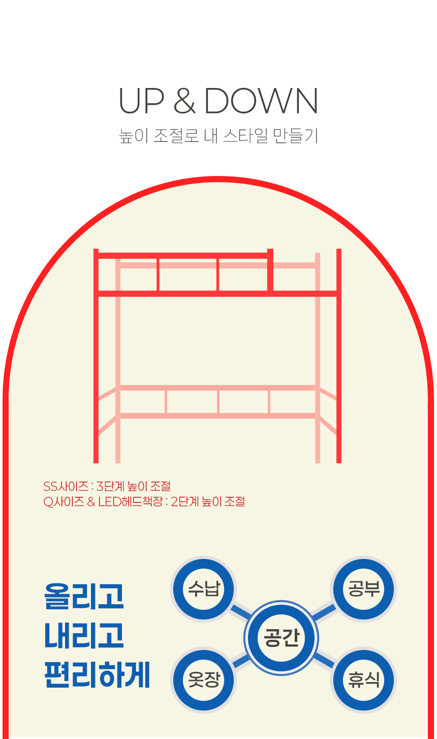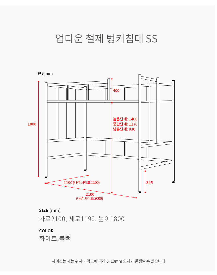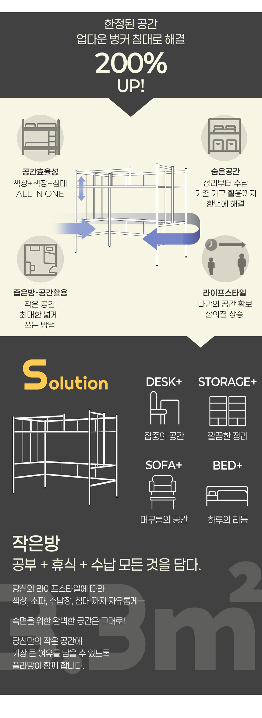 업다운 철제 이층 침대 블랙 SS 수납계단형