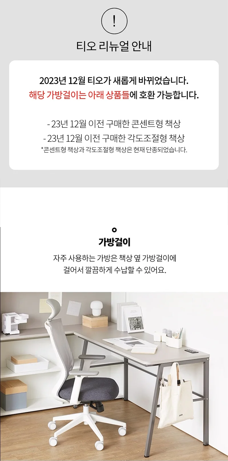 가구 책상용 가방걸이 (화이트/그레이,티오 콘센트/각도조절 전용)