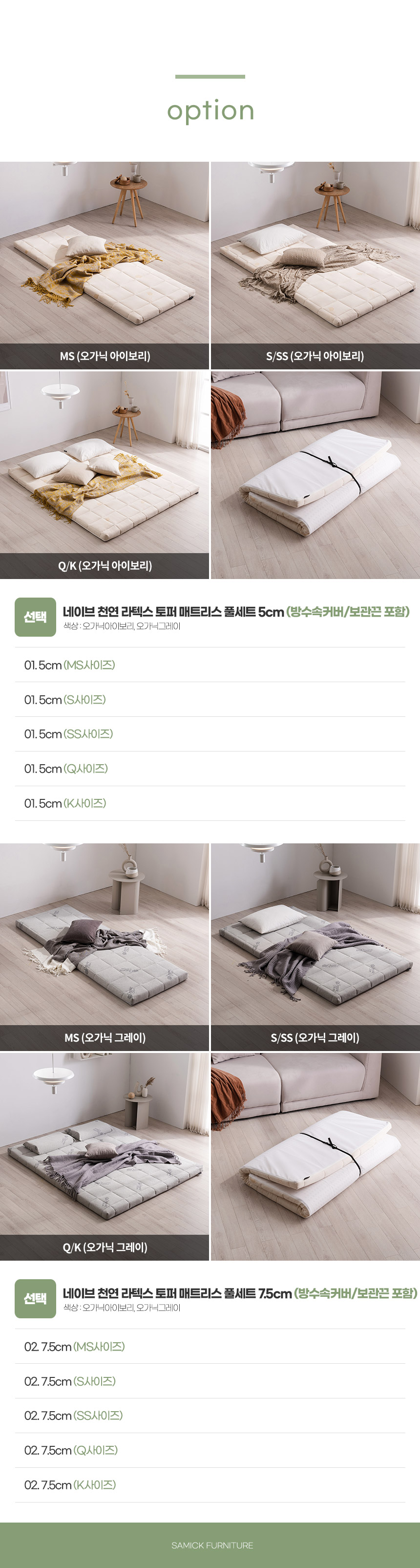 삼익가구 네이브 천연 라텍스 토퍼 매트리스 풀세트(방수속커버/보관끈 포함)