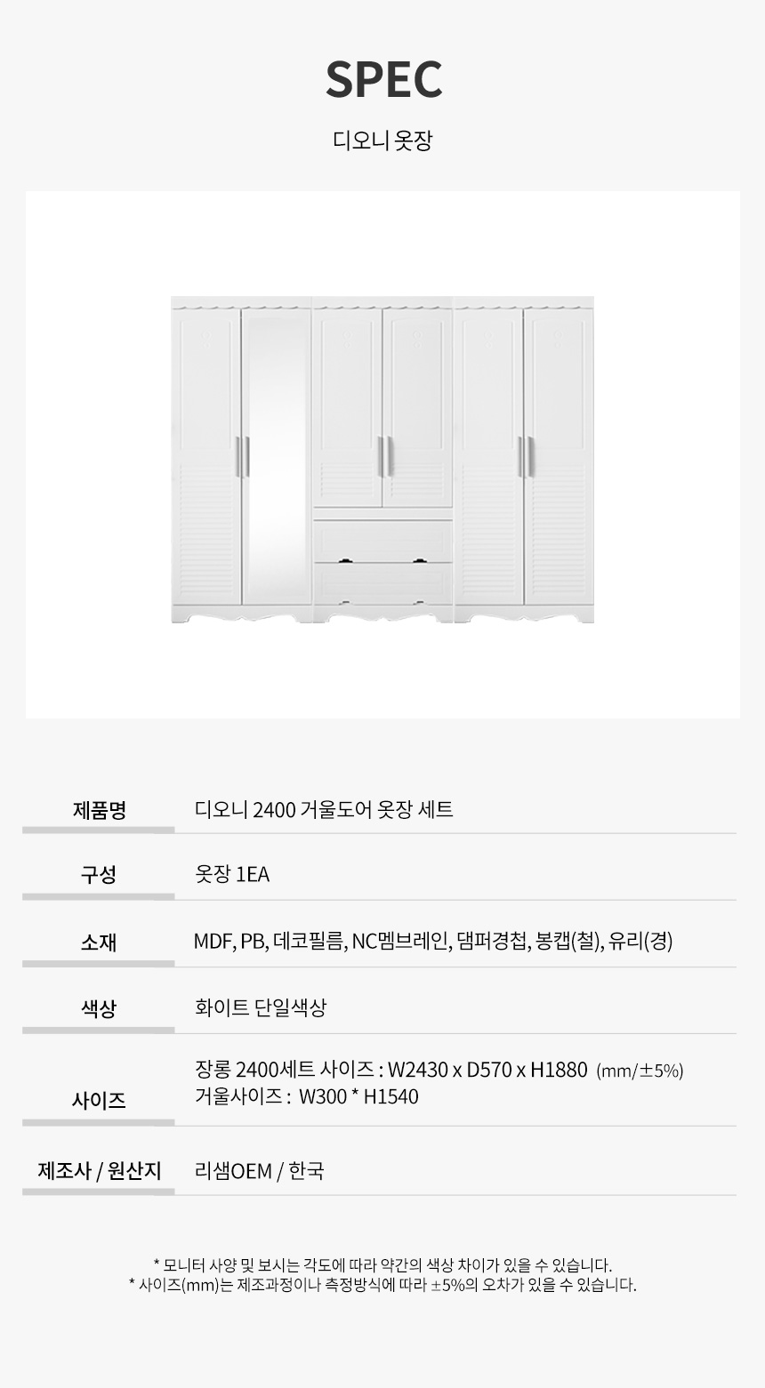 파로마 디오니 드레스룸 옷장 거울 2400세트