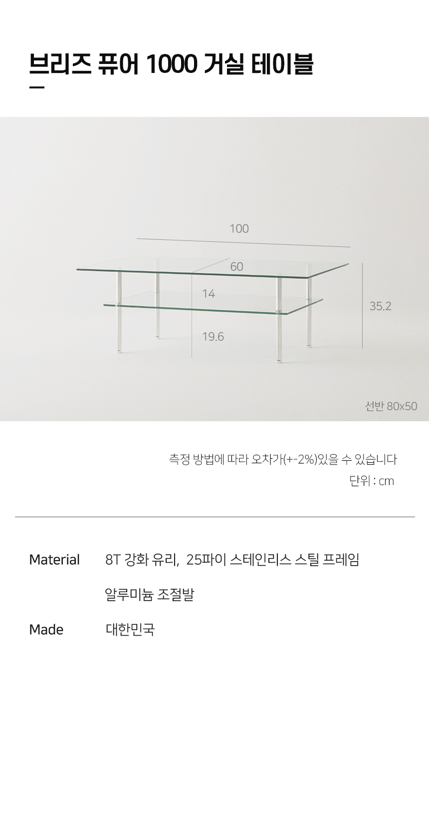 아늑 브리즈 퓨어 1000 강화 유리 모듈 거실 테이블/사각 소파 테이블