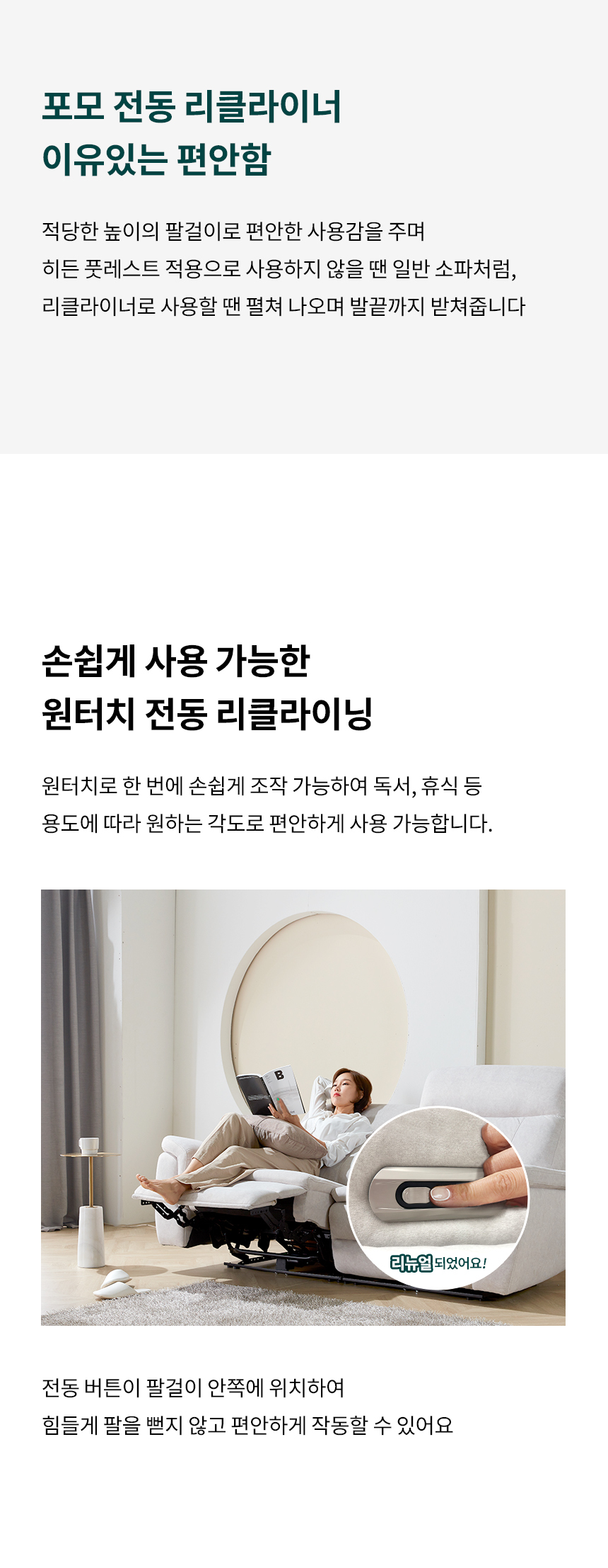 포모 조야 아쿠아텍스 전동 리클라이너 3인용 소파