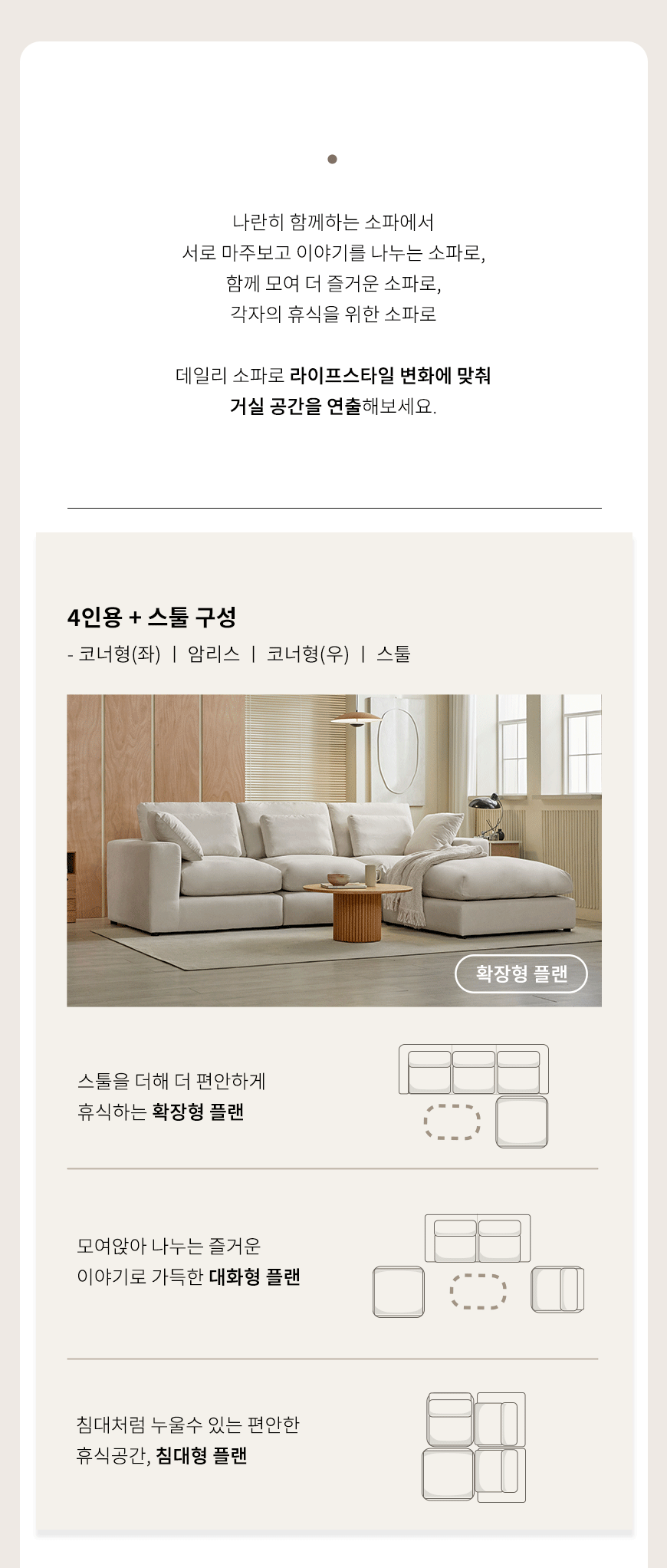 (한샘몰pick) 데일리 구스 모듈 아쿠아텍스 패브릭소파 3인용 (4colors)
