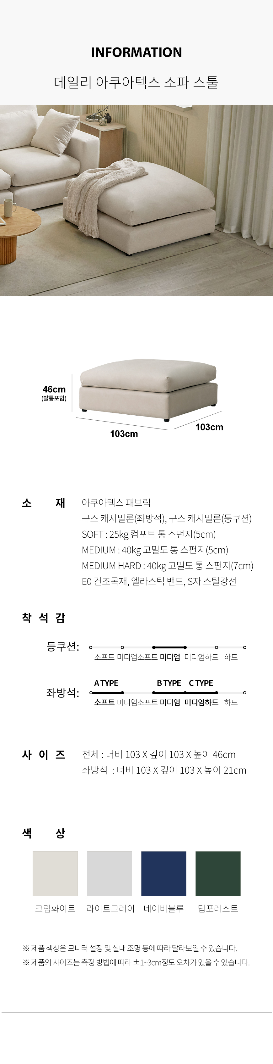 (한샘몰pick) 데일리 구스 모듈 아쿠아텍스 패브릭소파 스툴 (4colors)