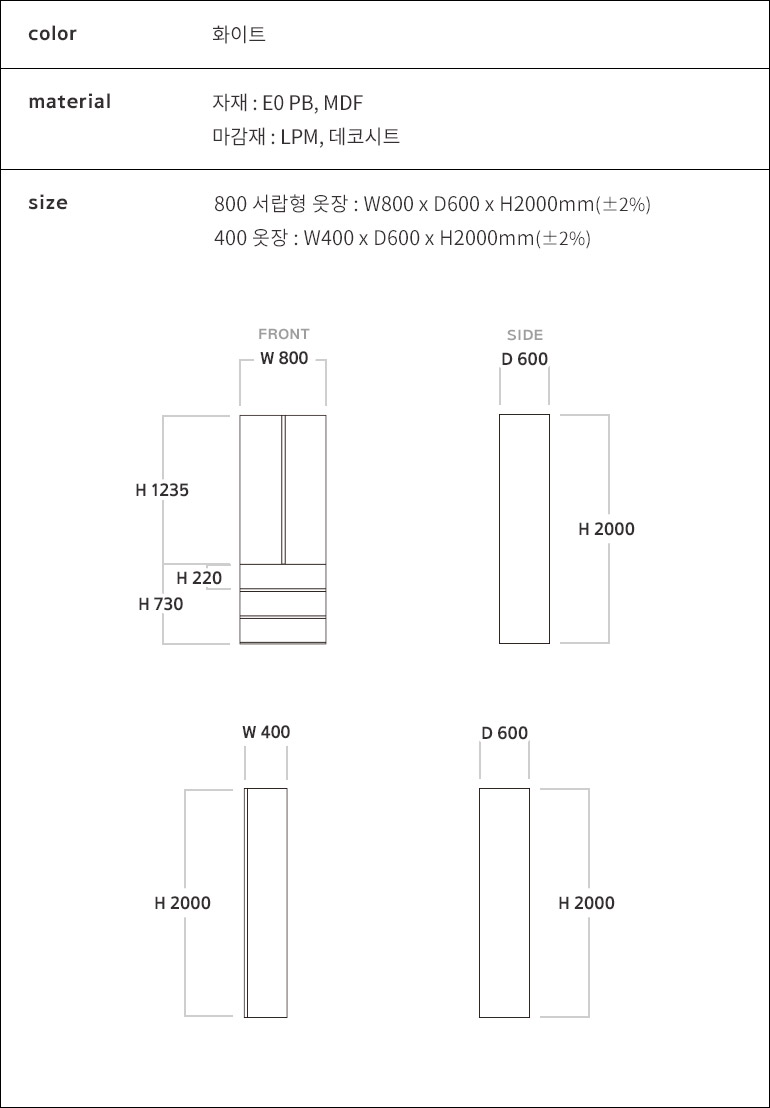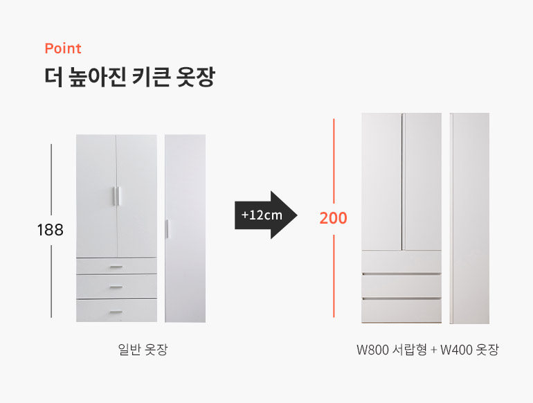 스칸디아 플랫 E0등급 1200 키큰 옷장(800 서랍형 옷장+400 일반형)
