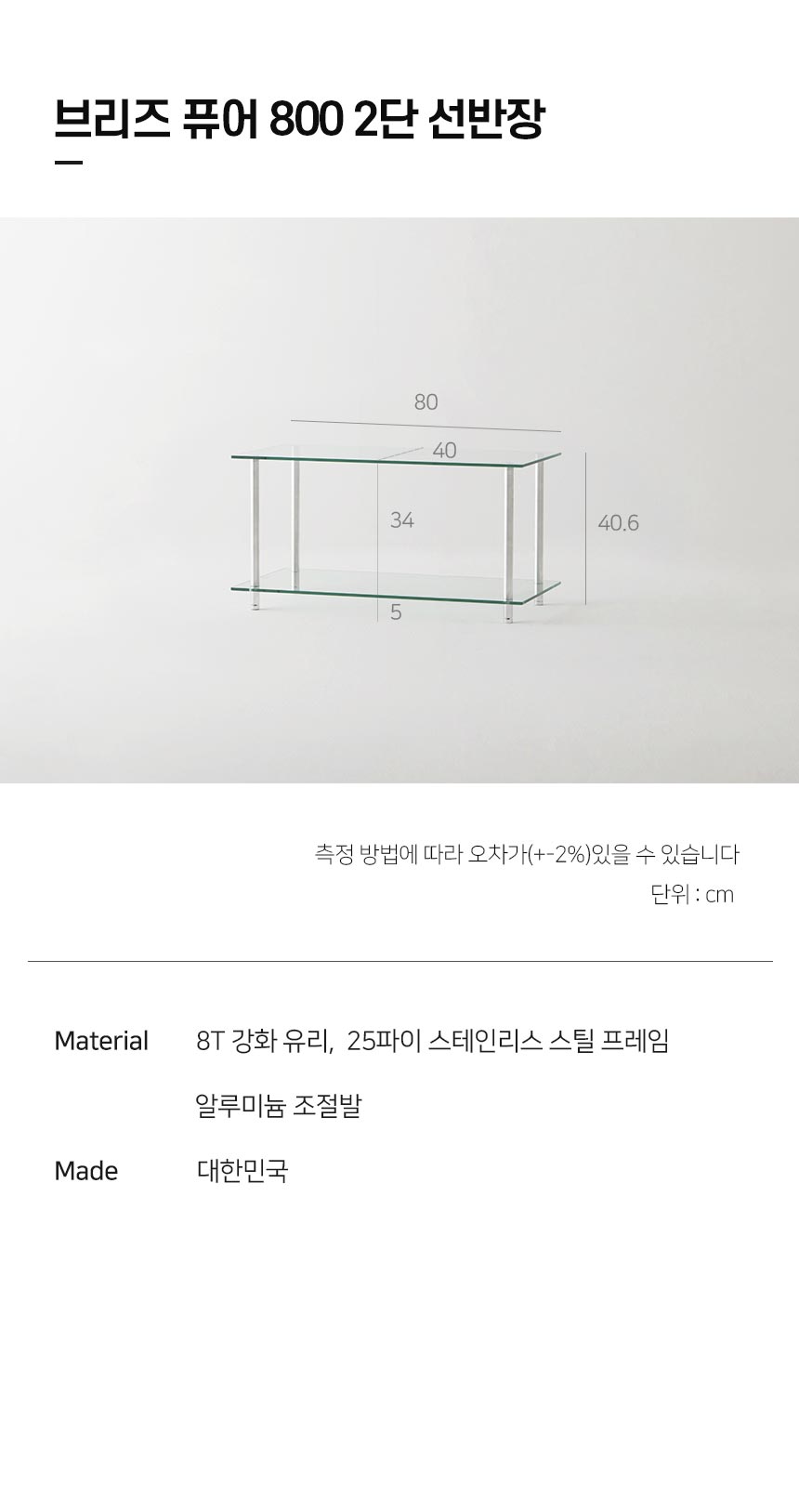 아늑 브리즈 퓨어 800 2단 강화유리 선반장 / 모듈가구/장식장