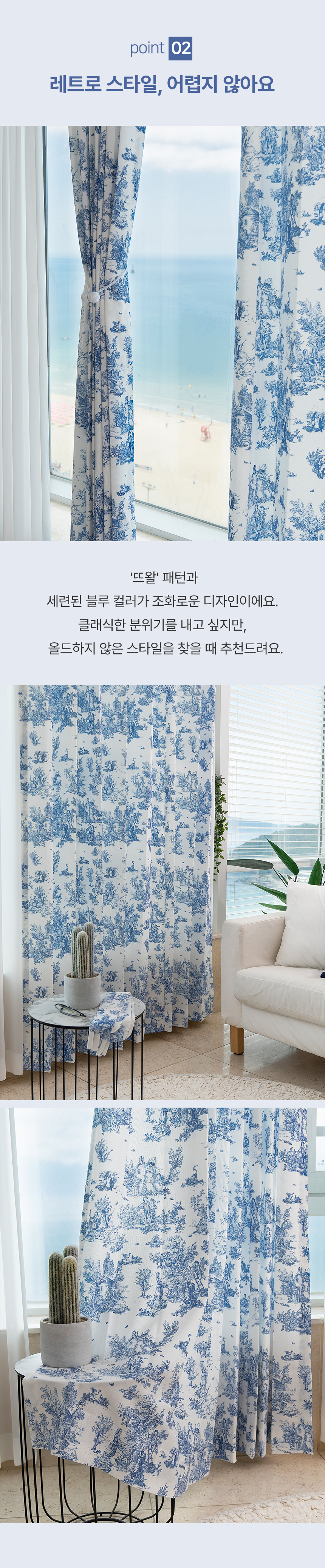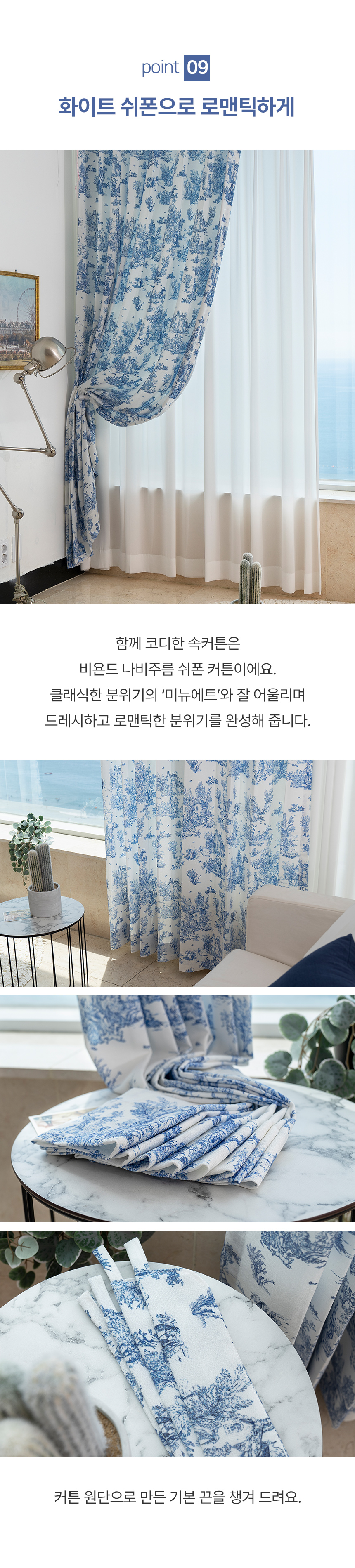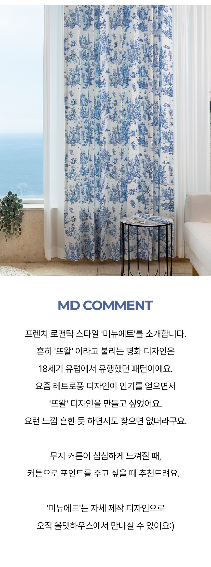 미뉴에트 뜨왈 블루 린넨스타일 커튼