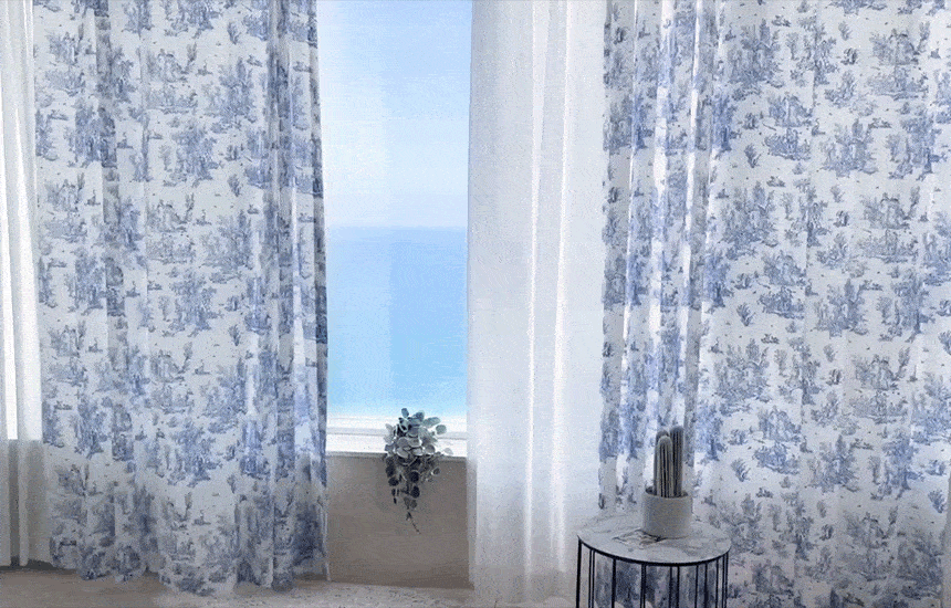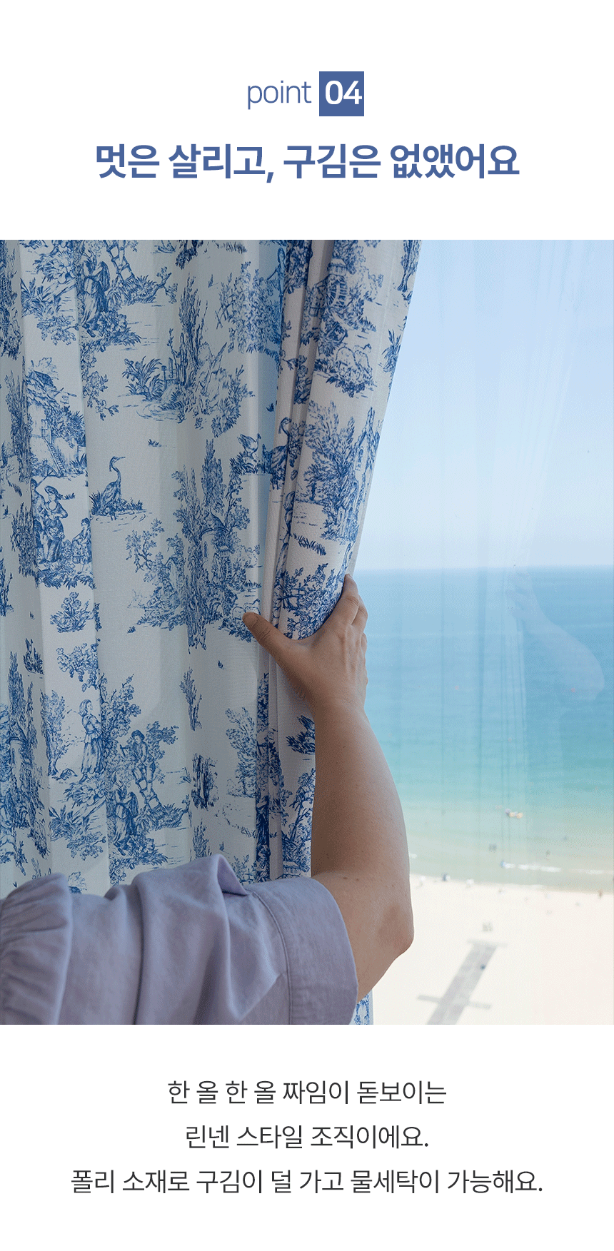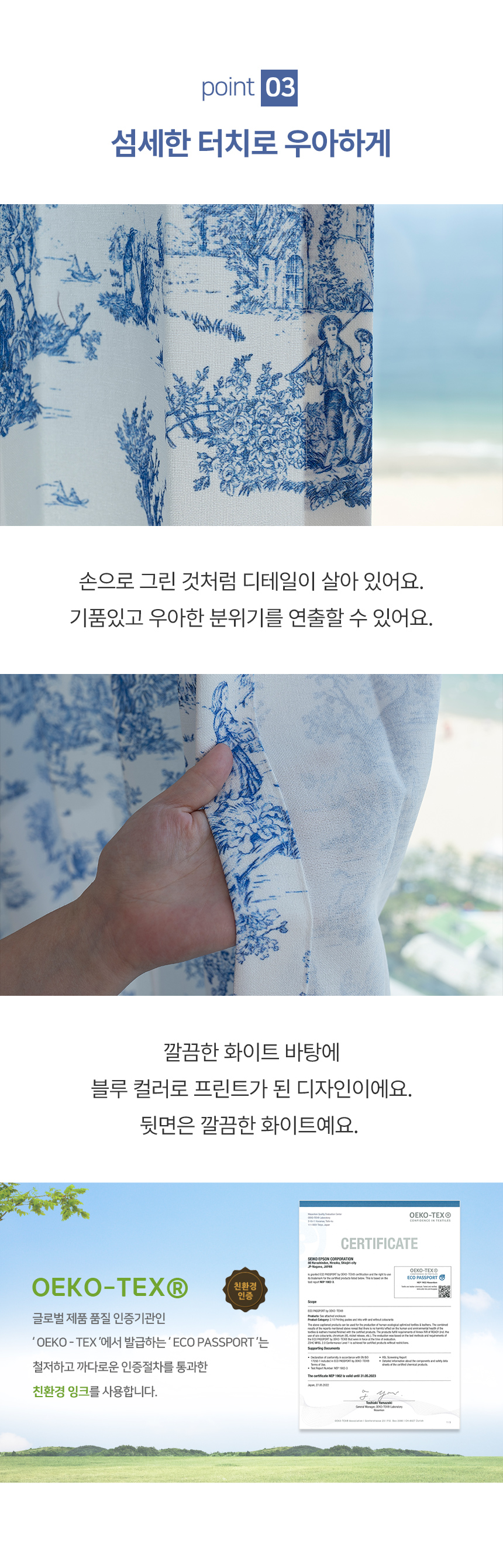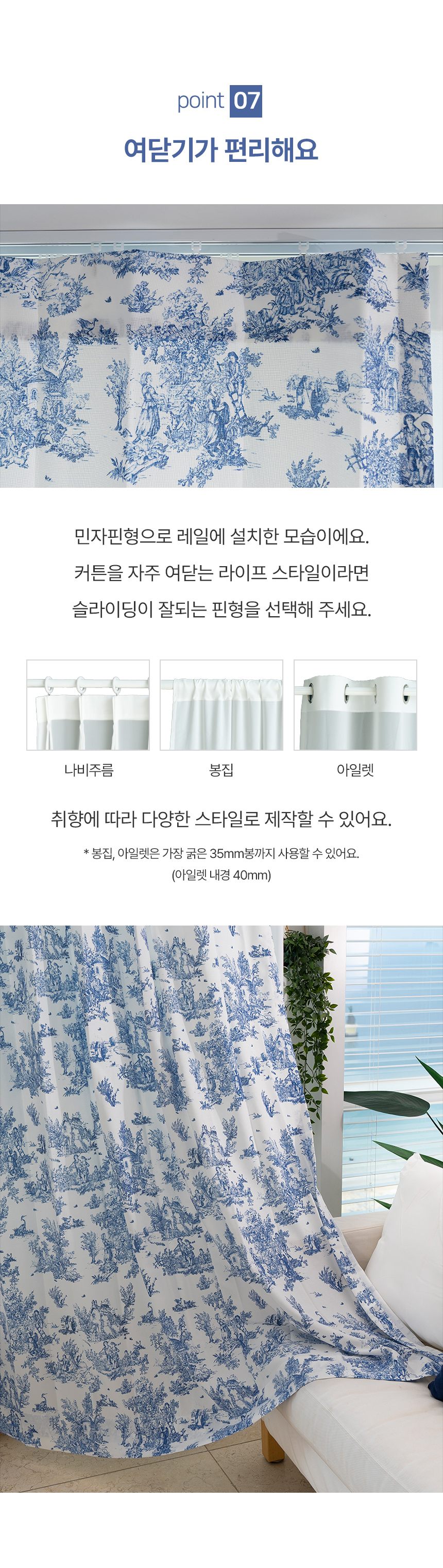 미뉴에트 뜨왈 블루 린넨스타일 커튼