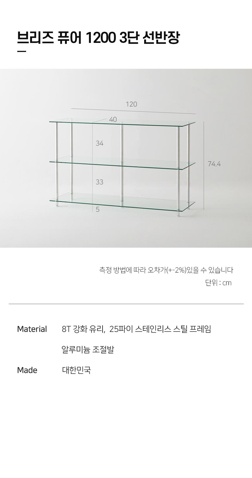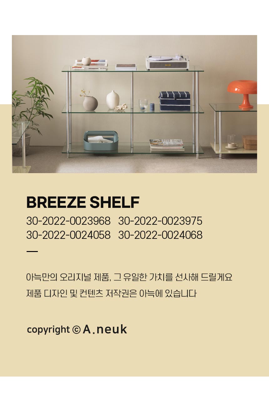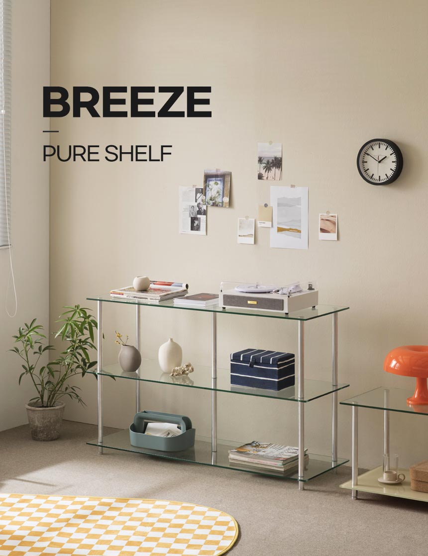 아늑 브리즈 퓨어 1200 3단 강화유리 선반장 / 모듈가구/높은거실장