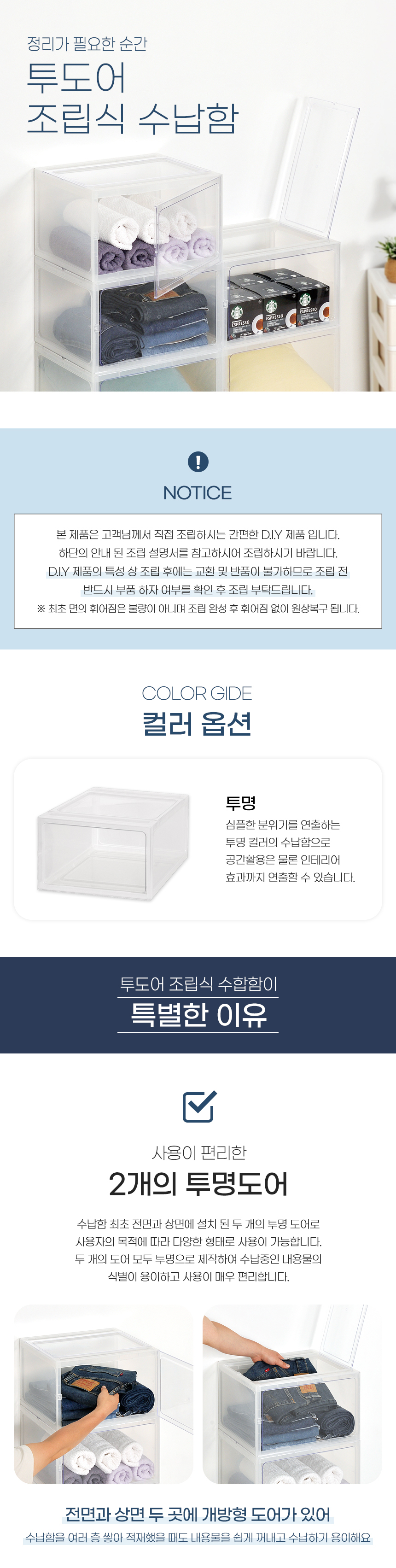 투도어 DIY 조립식 수납함 4개 플라스틱 서랍장 수납장 정리함