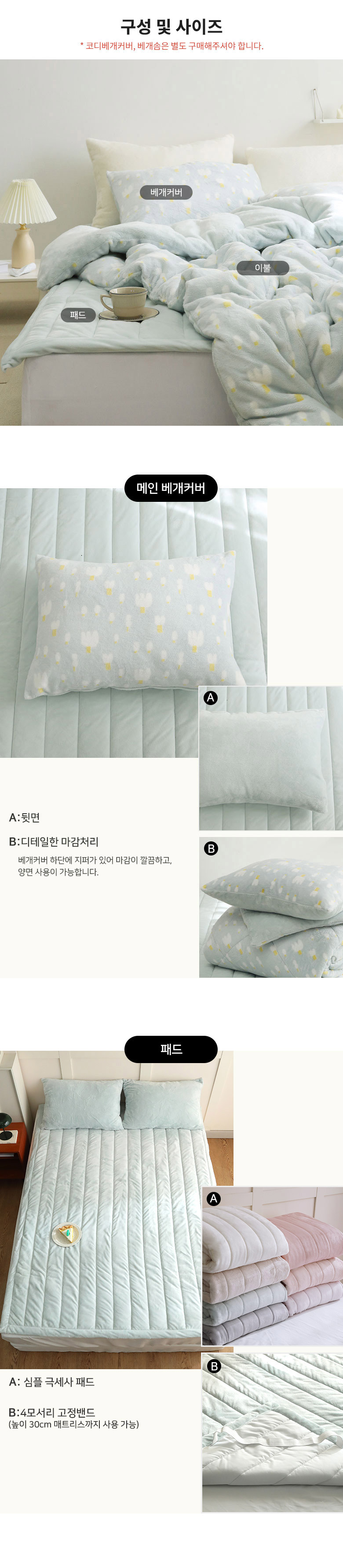 스노우엘프 밍크 극세사 차렵이불 단품 및 세트 SS/Q/K