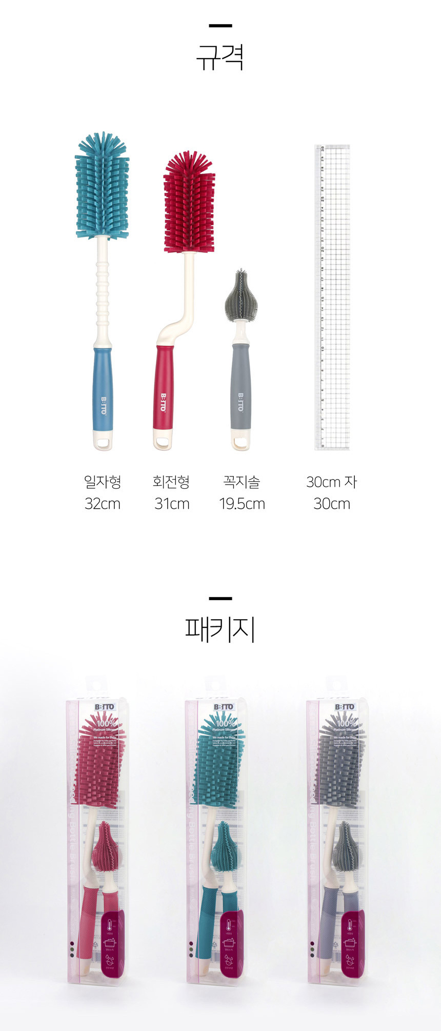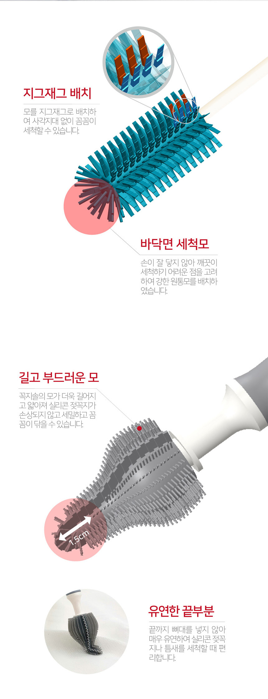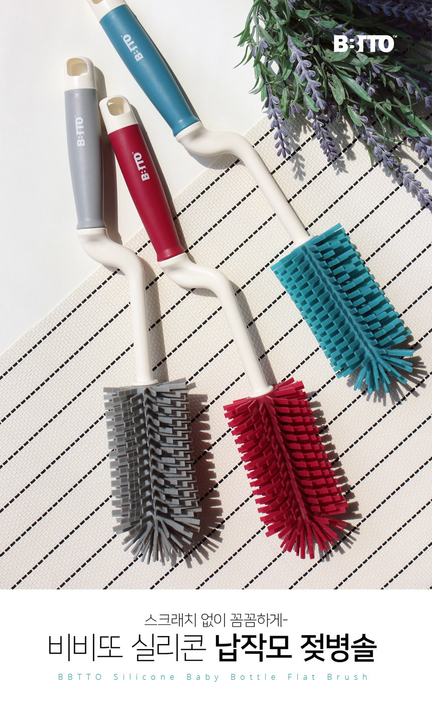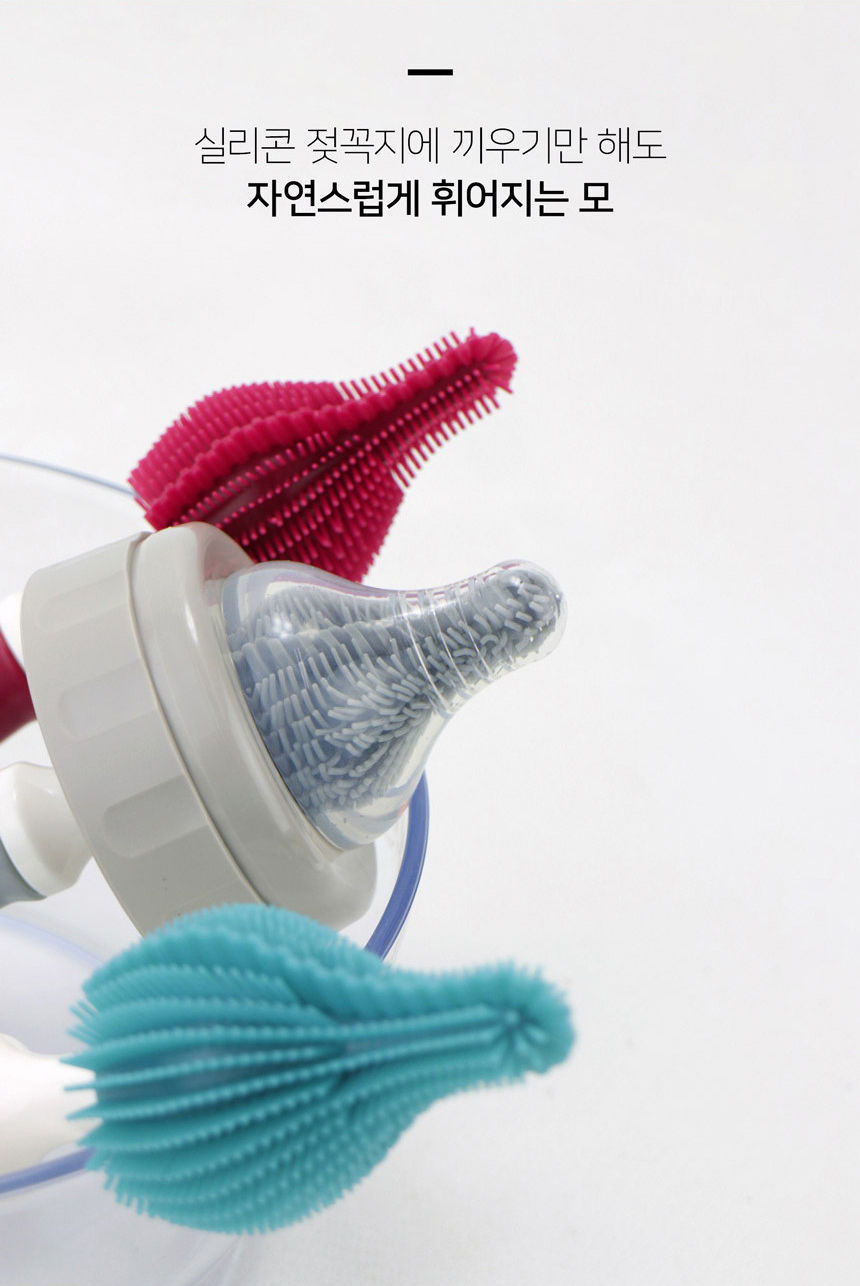 실리콘 납작모 세척 브러쉬 일자솔세트