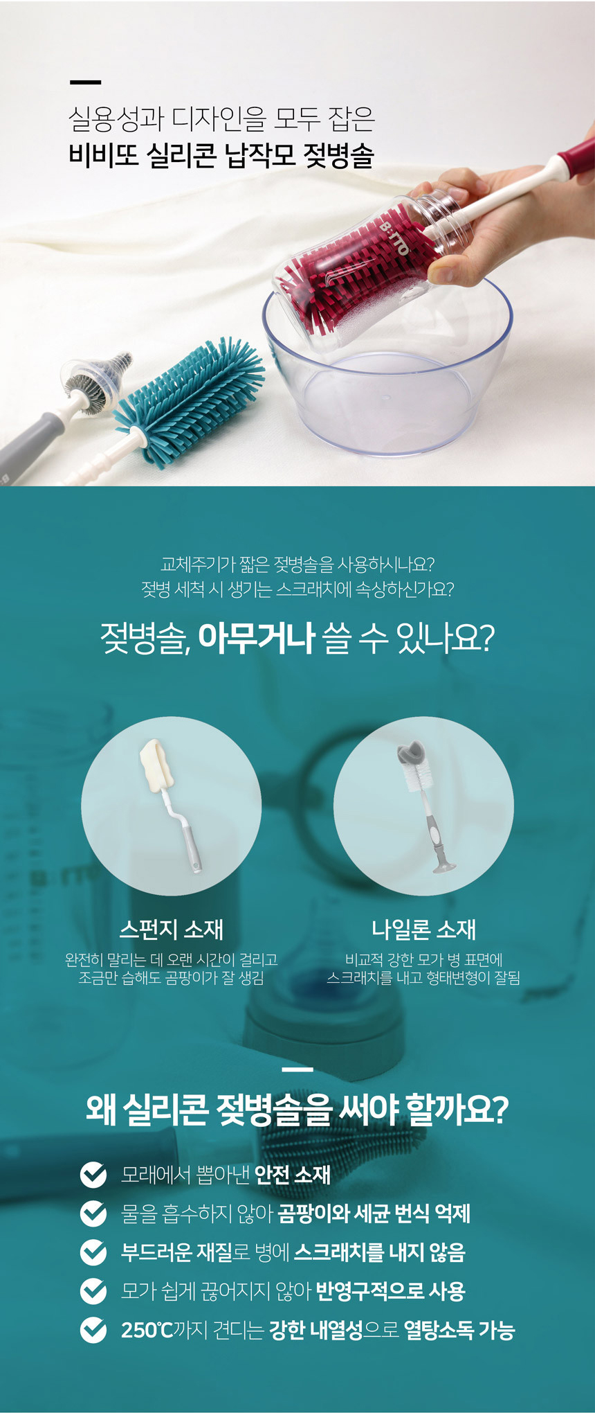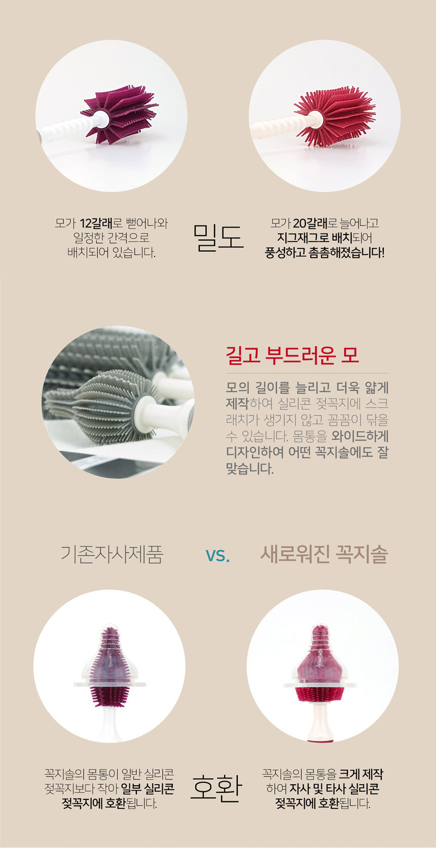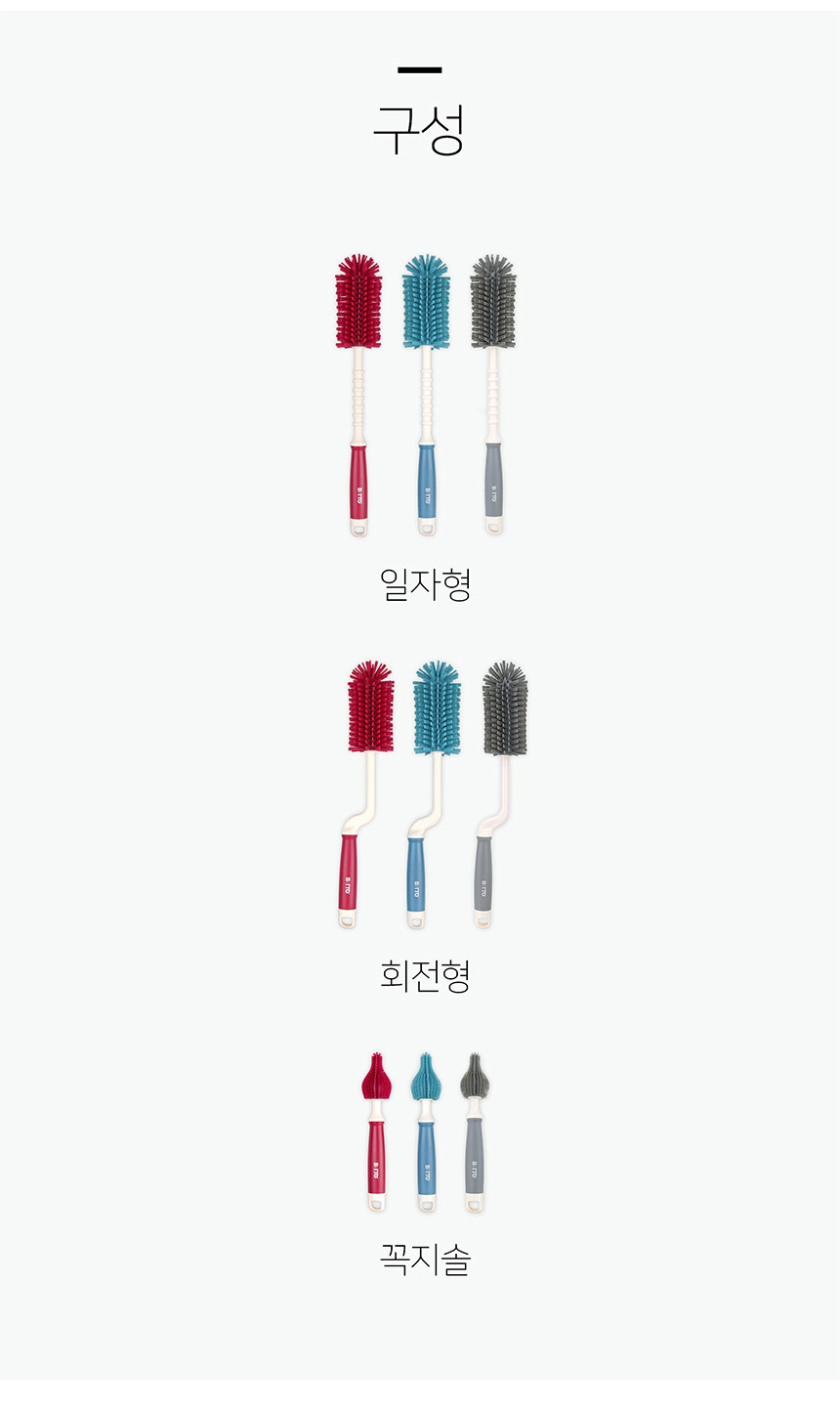 실리콘 납작모 세척 브러쉬 일자솔세트