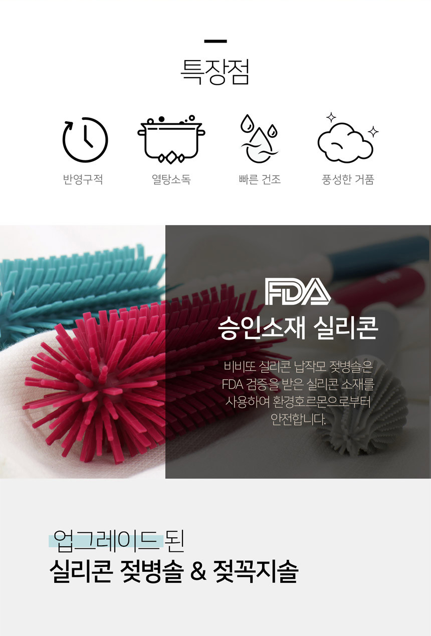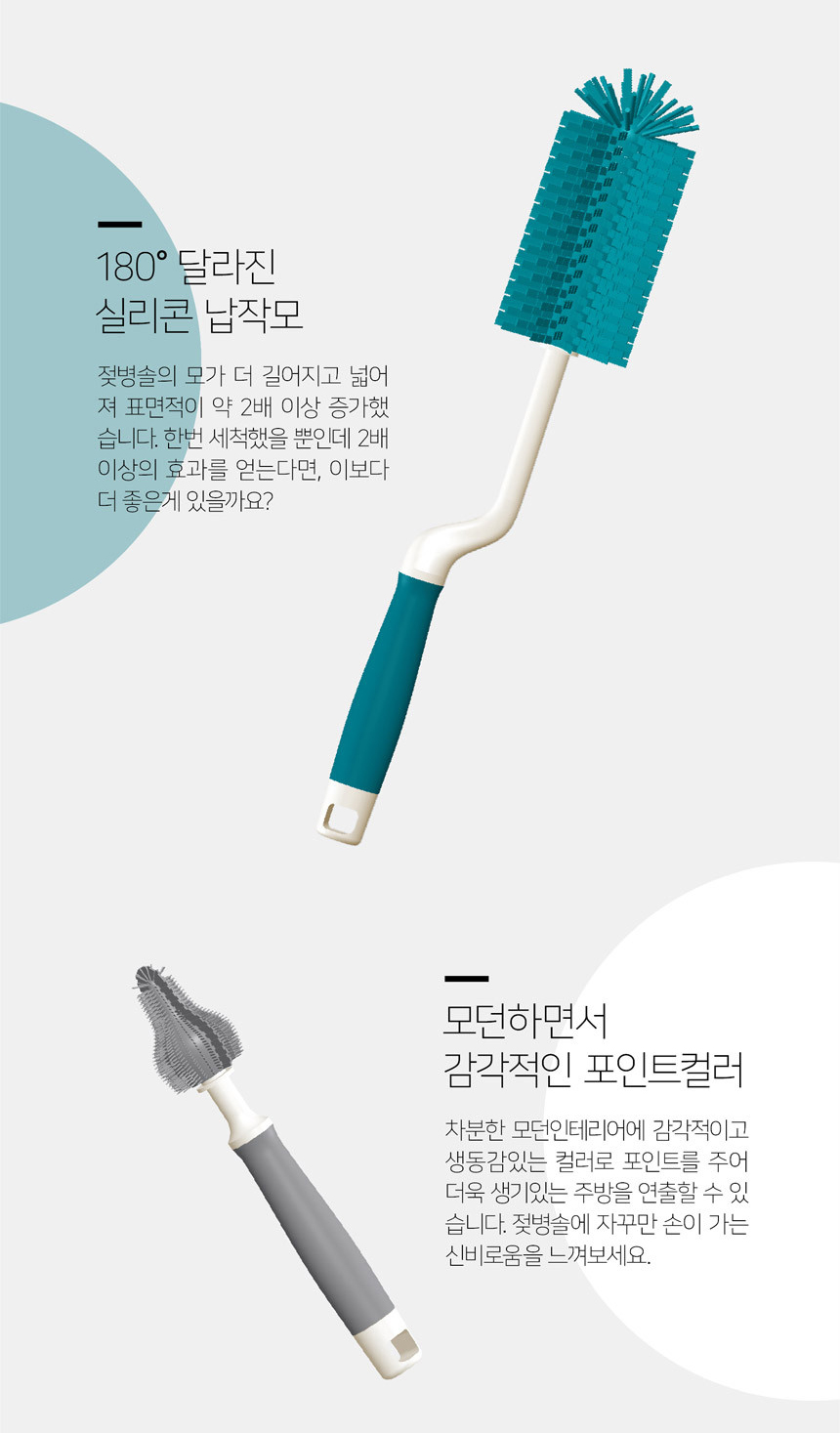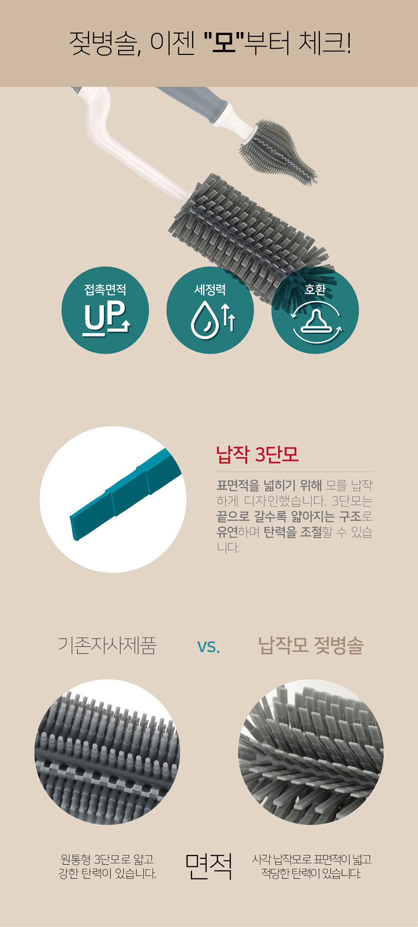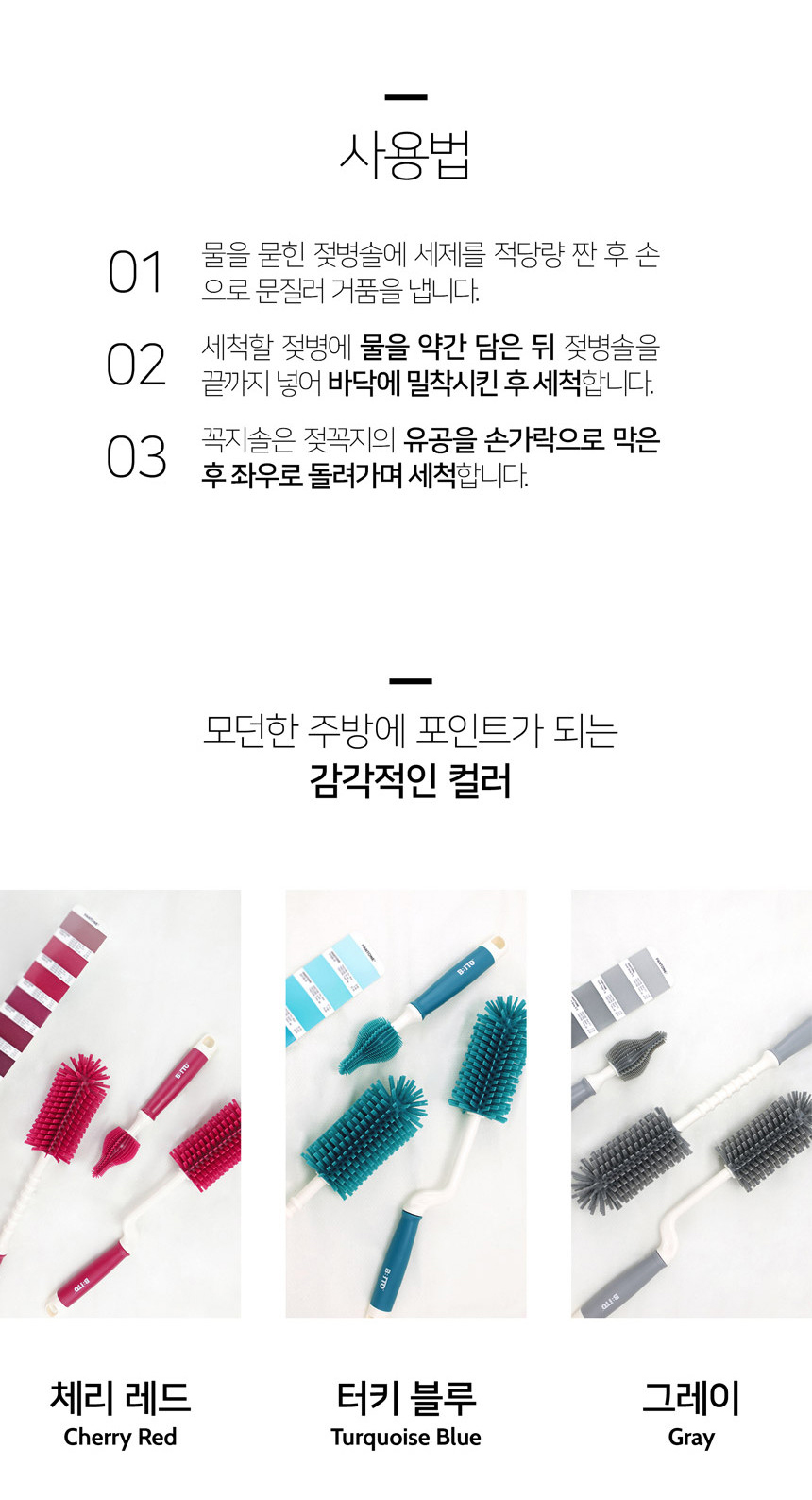 실리콘 납작모 세척 브러쉬 일자솔세트