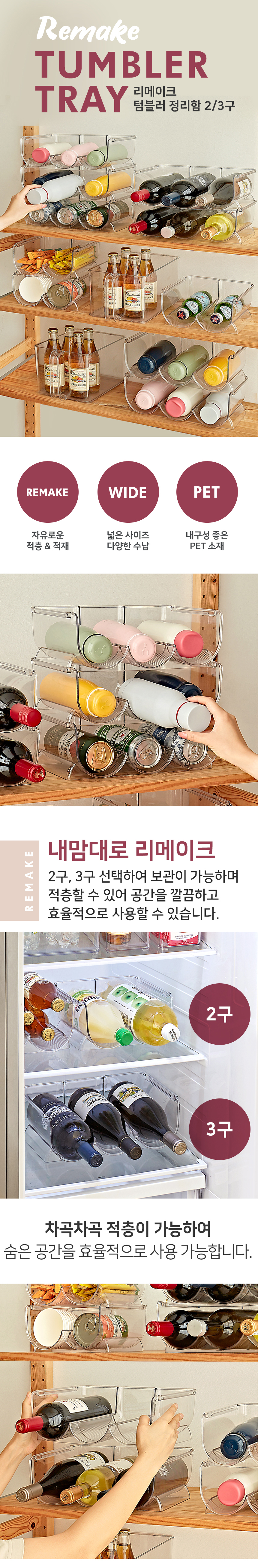 리본제이 리메이크 수납 정리 텀블러 정리함 2구/3구 팬트리 와인 거치대 와인랙 적층 보관함