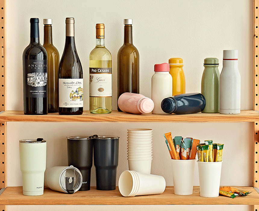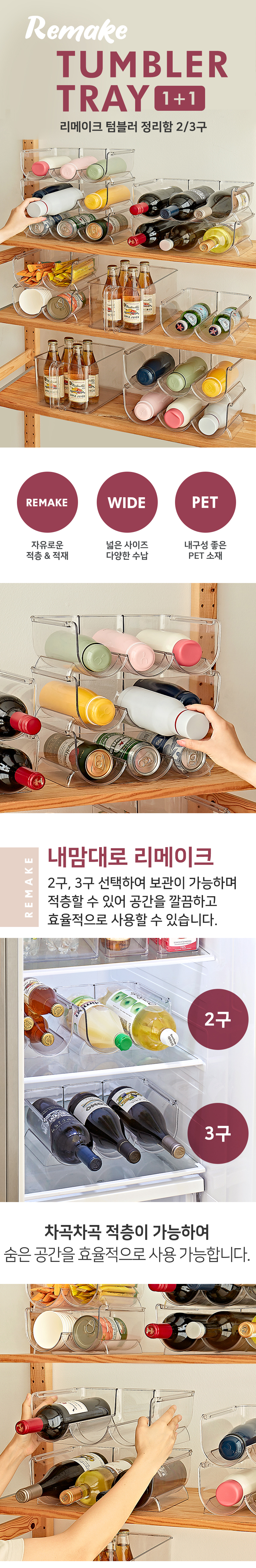 리본제이 1+ 1 리메이크 수납 정리 텀블러 정리함 2구/3구 팬트리 와인 거치대 와인랙 적층 보관함