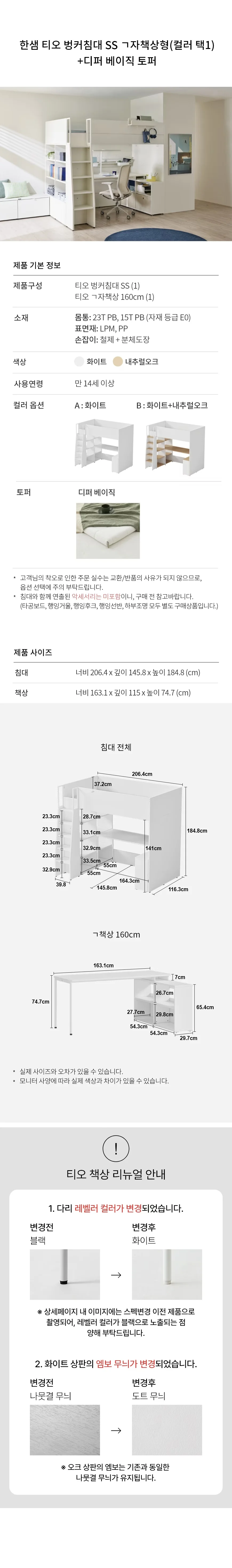티오 벙커침대 SS ㄱ자책상형+토퍼