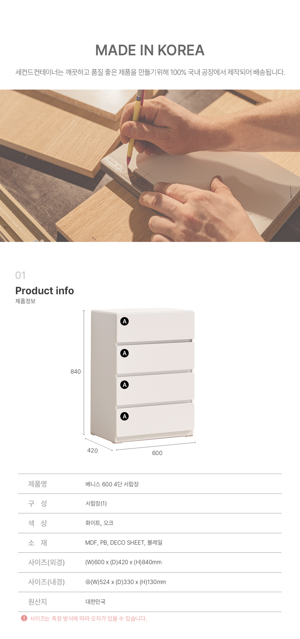 베니스 600 4단 서랍장