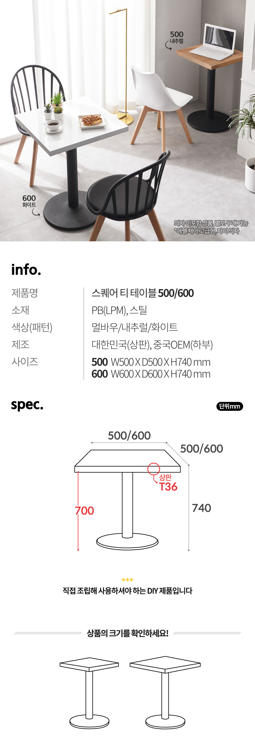 스퀘어 티 테이블 (3color/2size)