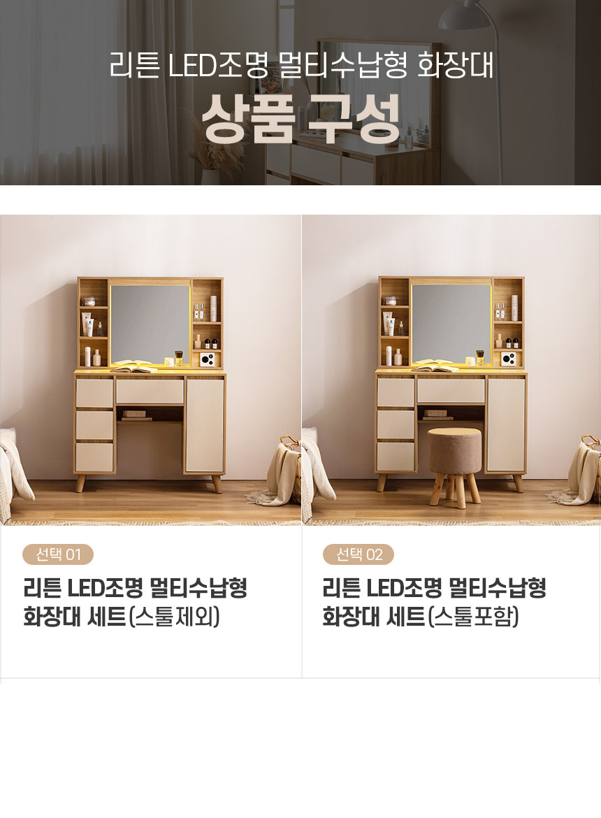 [삼익가구]리튼 LED조명 멀티수납형 화장대(스툴제외/스툴포함)