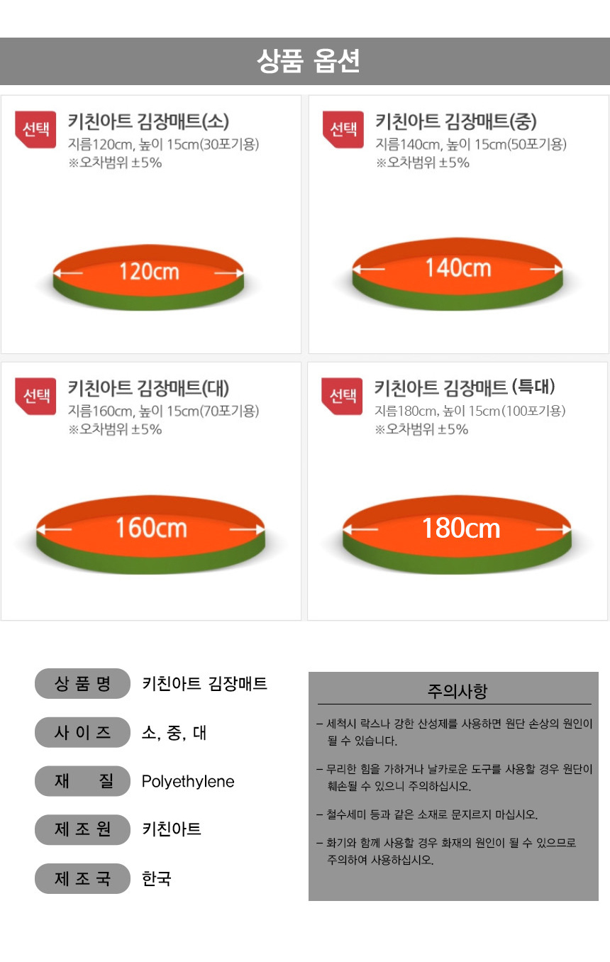 키친아트 무독성 무봉제 다용도 김장매트180cm 특대