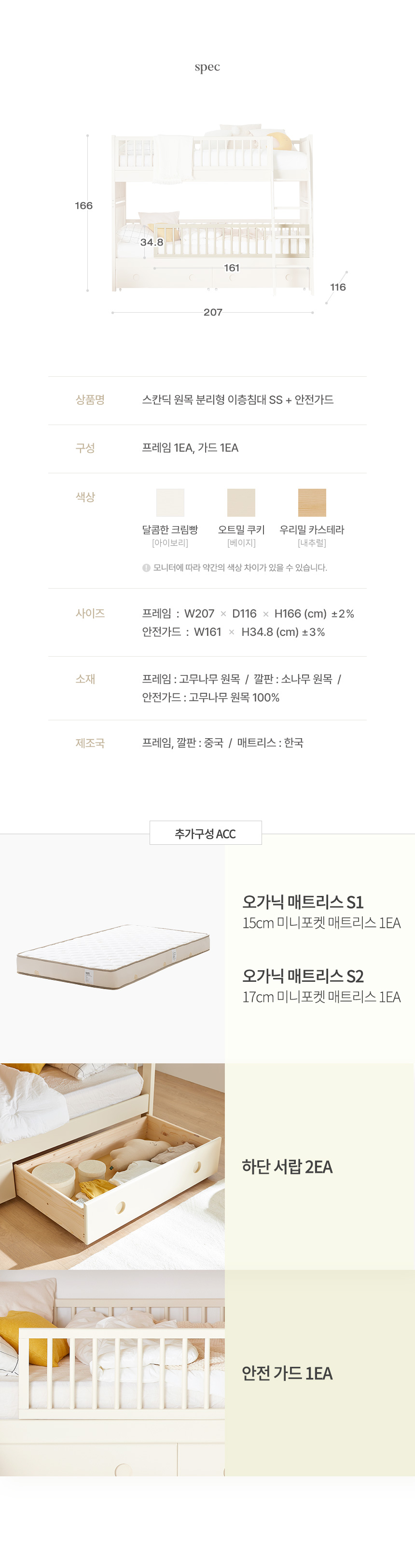 [특가 ~12/22]스칸딕 분리형 이층침대 안전가드 포함세트