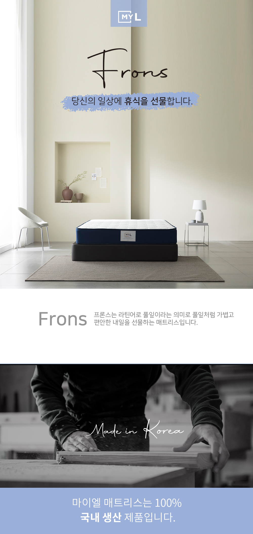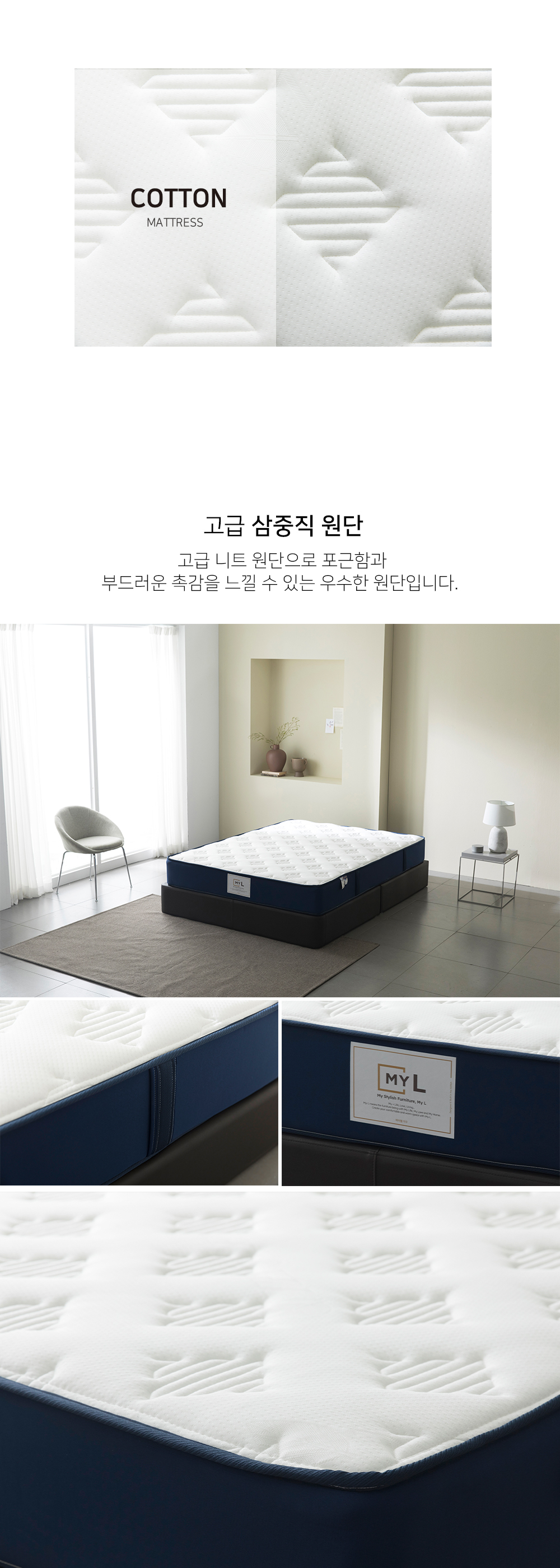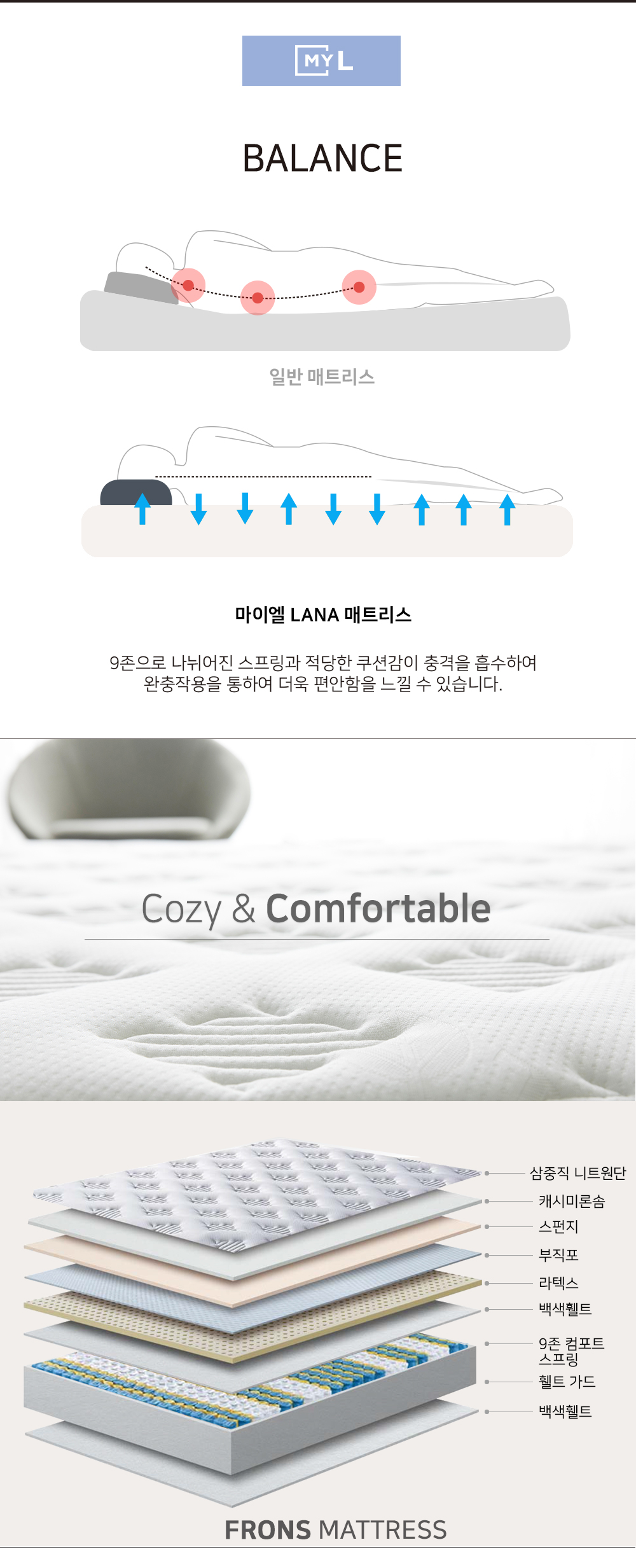 #국내생산제품인 마이엘 매트리스 라나는 부드러운, 따듯한 이라는 의미로 포근한 느낌을 가진 매트리스입니다.