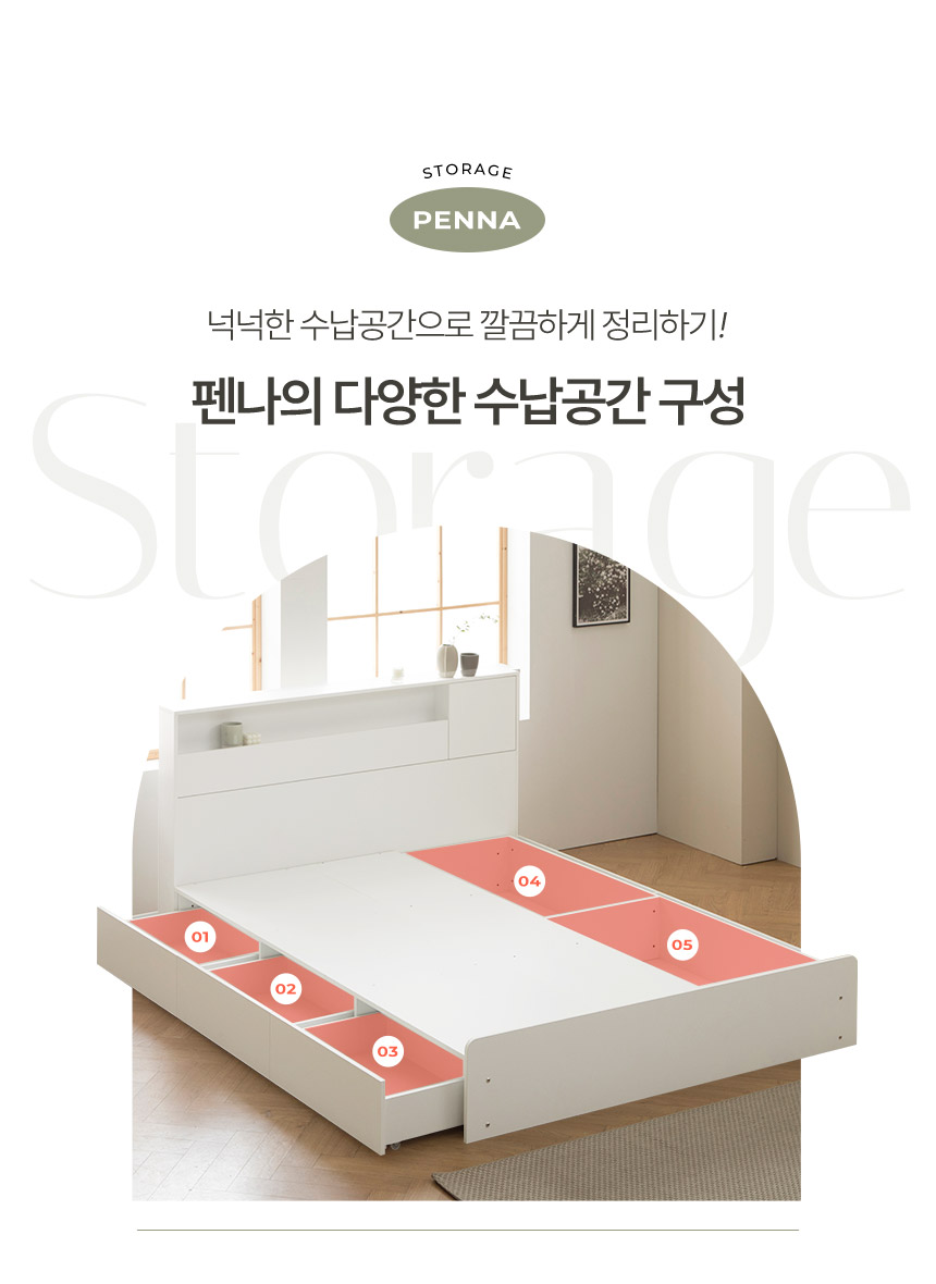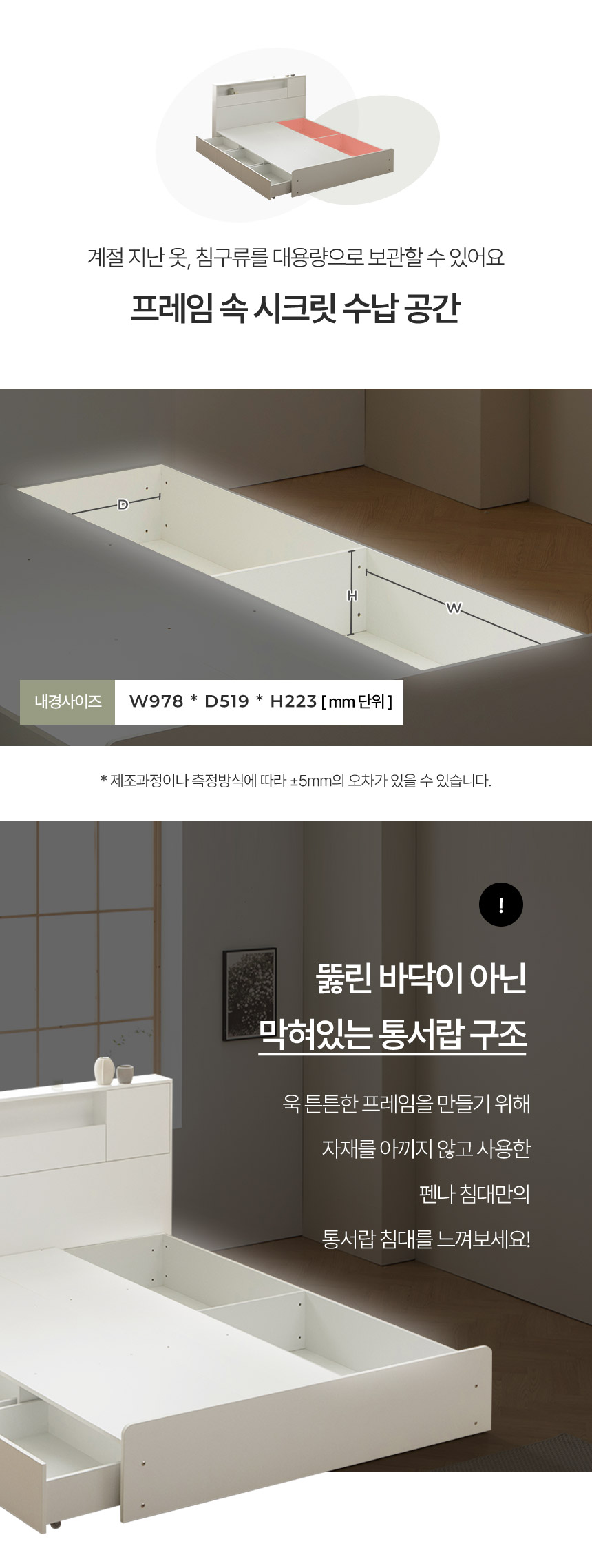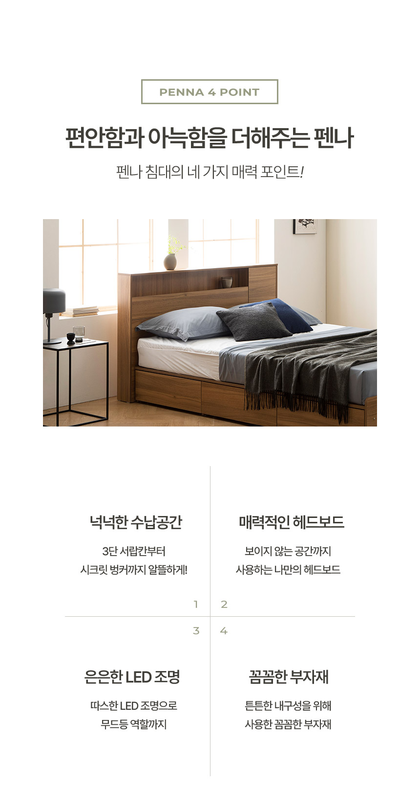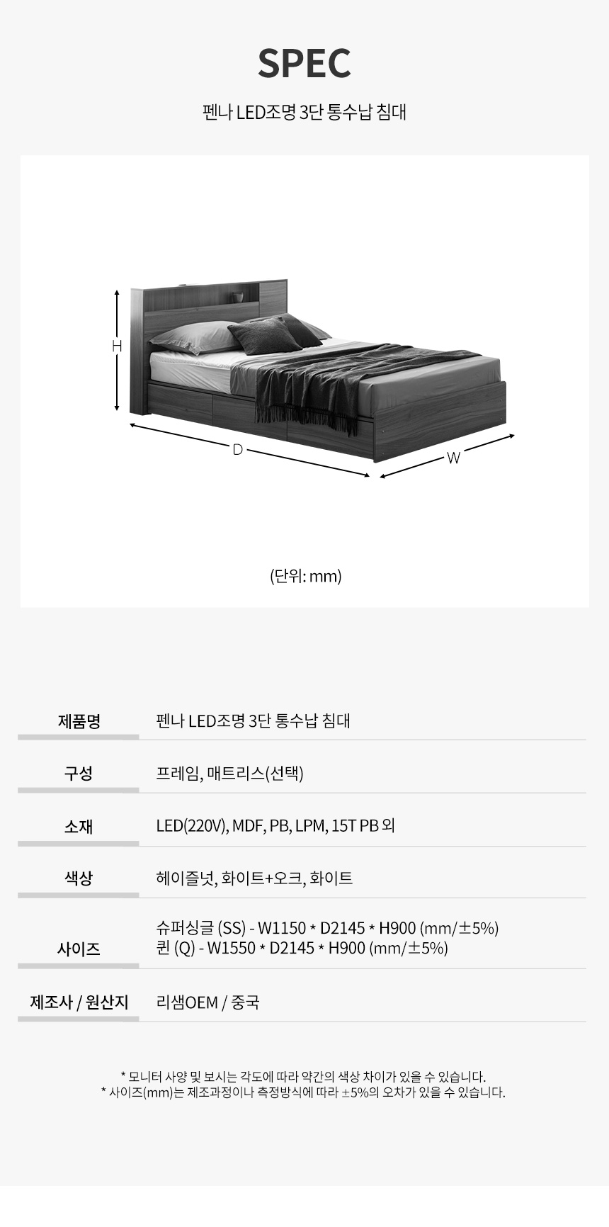 파로마 펜나 LED 3단 통수납침대 SS/Q