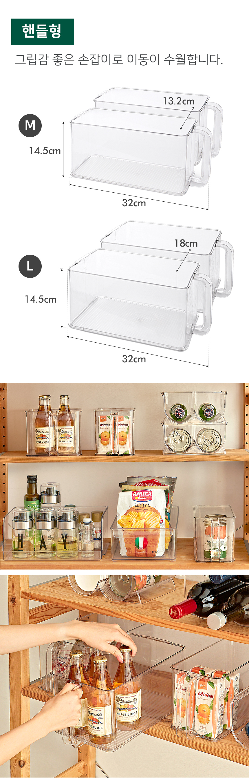 리본제이 1+1 리메이크 수납 정리 트레이 냉장고 팬트리 정리함 / 핸들형 L