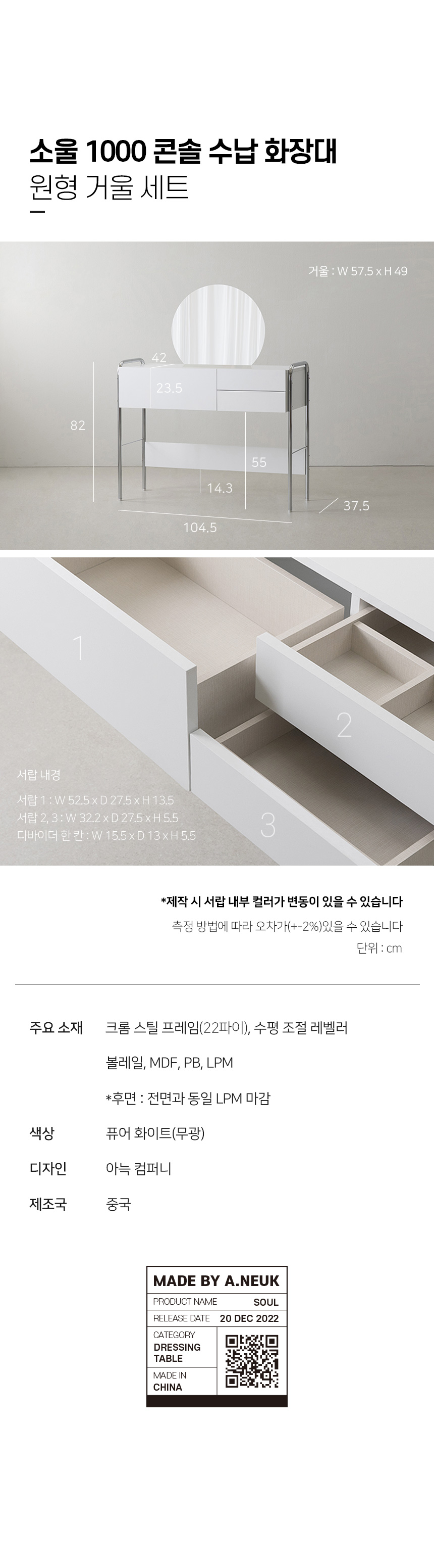 아늑 소울 1000 콘솔 수납 화장대 (거울세트)